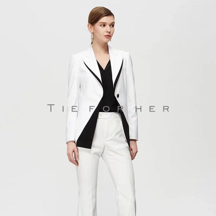 19SSDU160 本白撞色拼接西装两件套