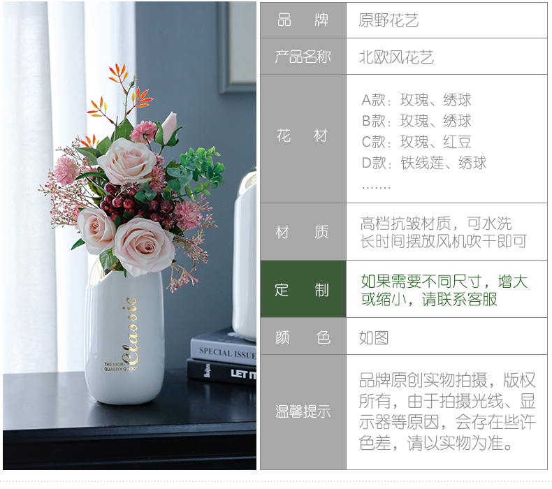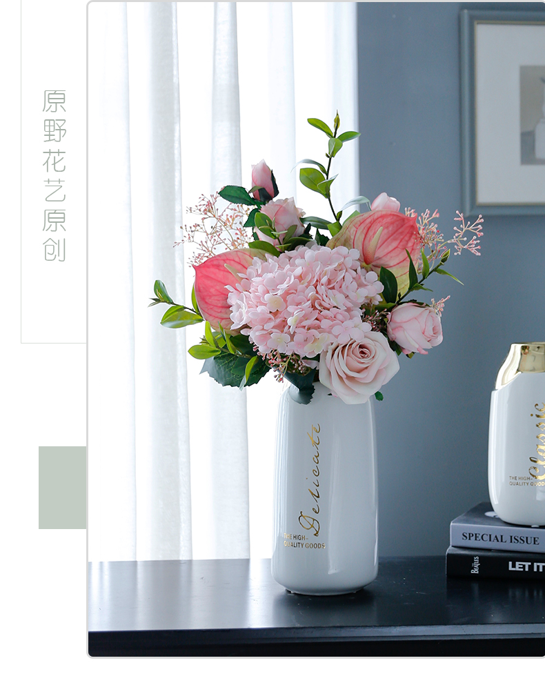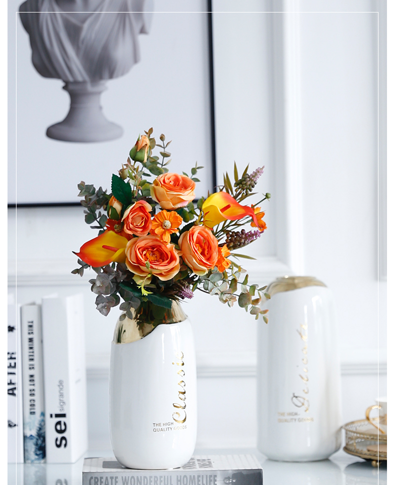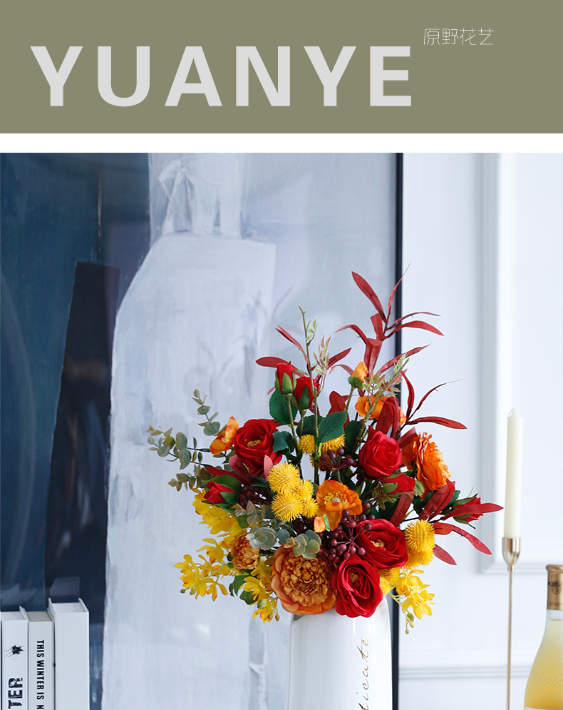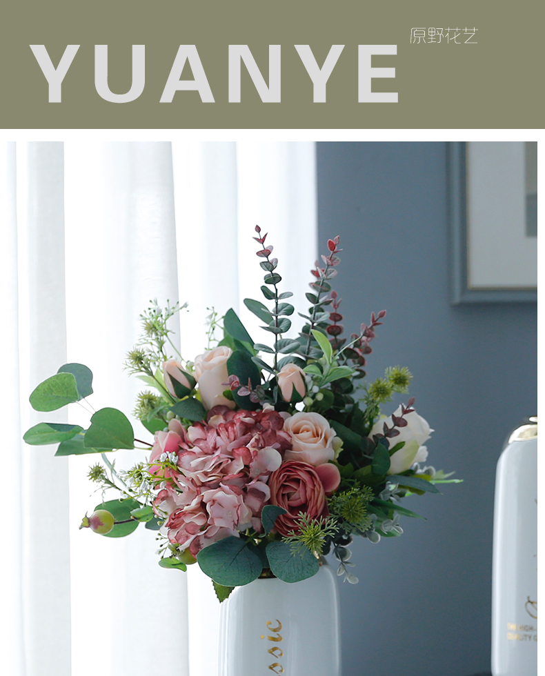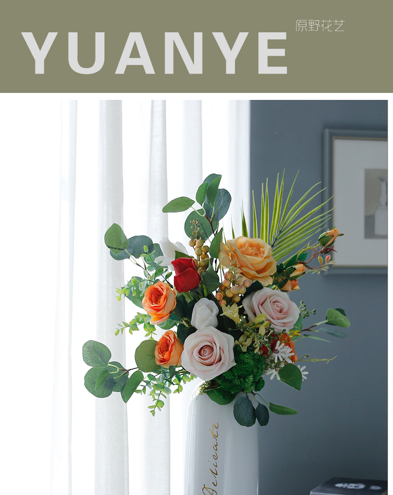 高档轻奢现代仿真花假花绢花酒店客厅玄关卧室餐桌茶几摆设件装饰