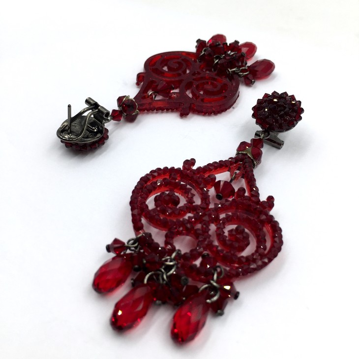 耳环材质为:珠宝级合金镀氧化银 人工玻璃水晶 珠宝级树脂