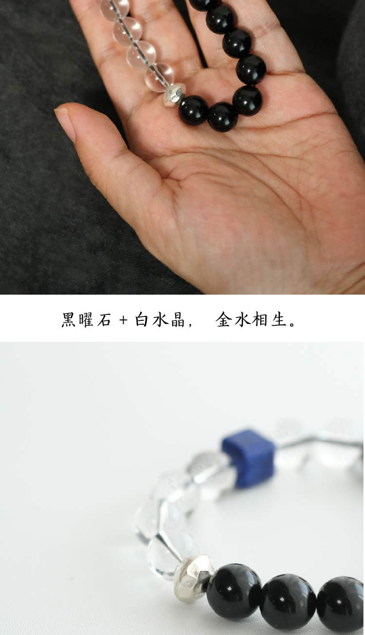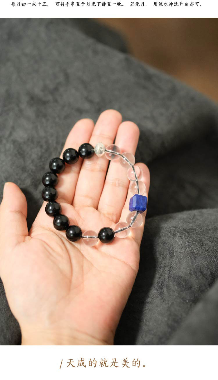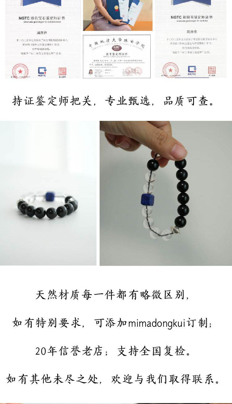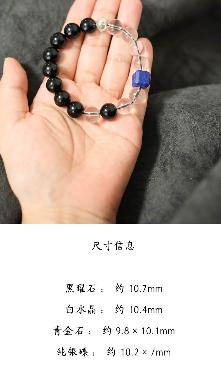 米马饰物 原创设计 黑曜石白水晶青金石手串 金水相生 生肖鼠推荐