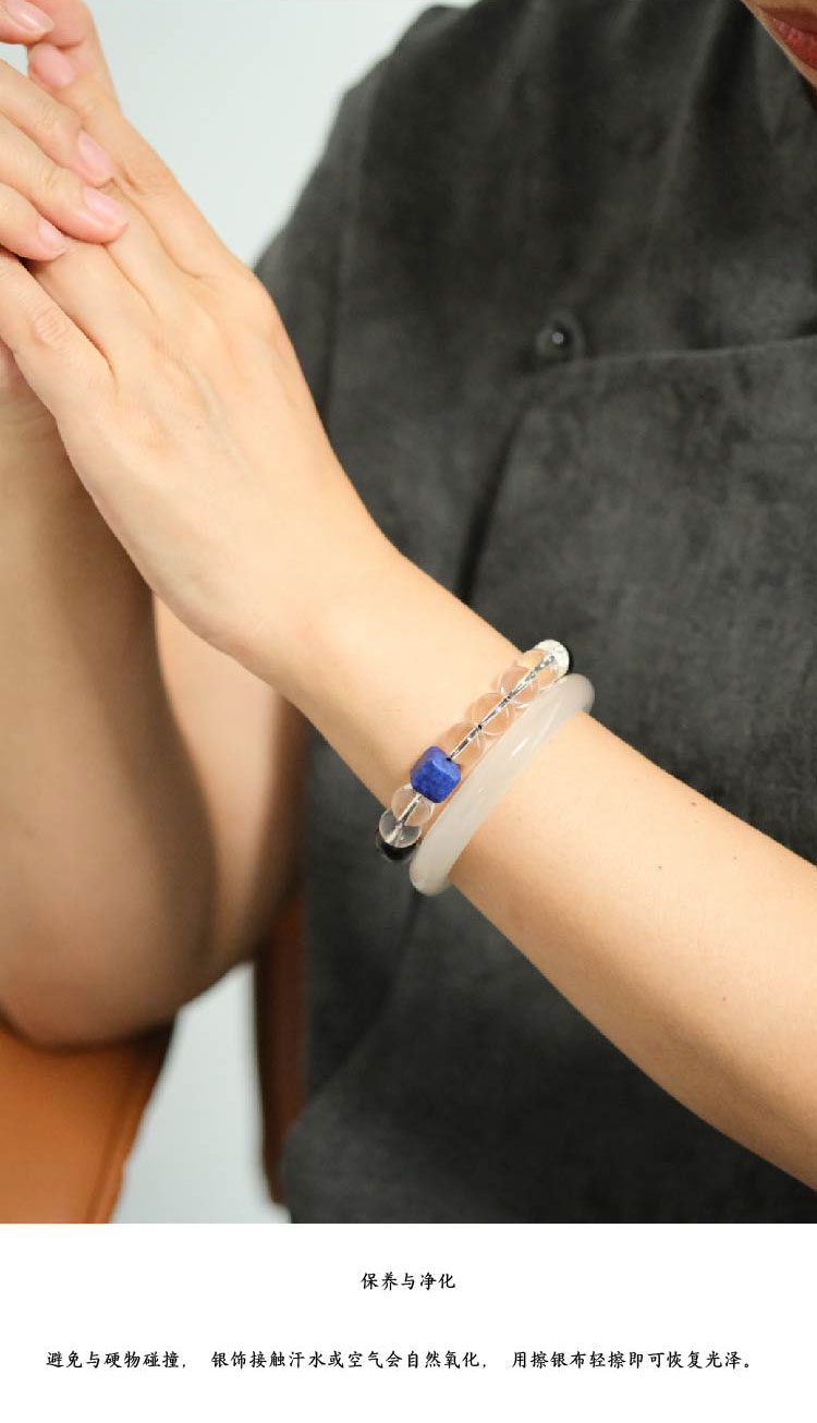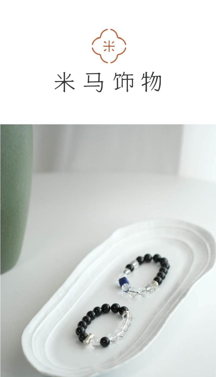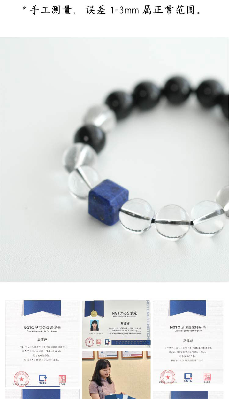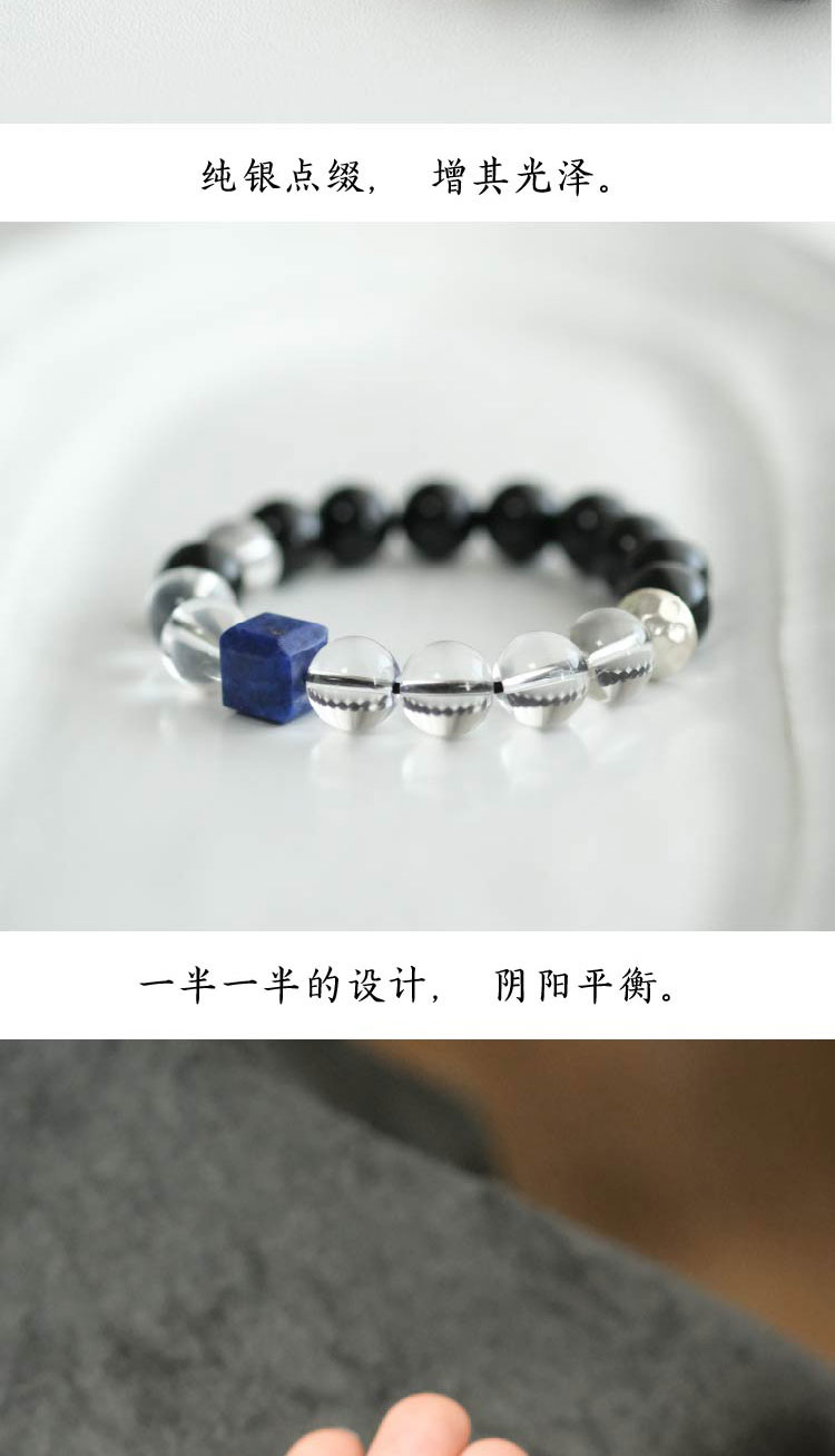 米马饰物 原创设计 黑曜石白水晶青金石手串 金水相生 生肖鼠推荐