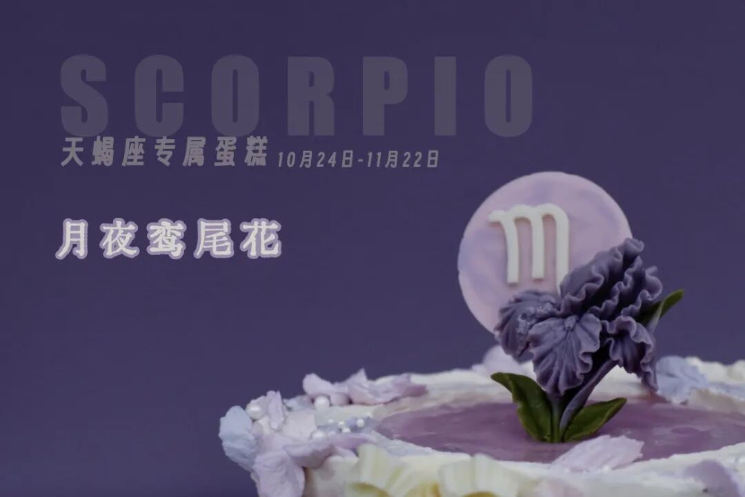 许是时节与心境的重叠,天蝎与双鱼、巨蟹同属水象星座,不仅给予蝎子柔情,敏感,还有深刻和执着。天蝎月份的雨水,仿佛是突然降临的命运,一次次加深大地上的河流——儿女情长,家国天下,是无法抗拒的宿命啊。也是缘分,每到这个月份,生日蛋糕就变得多起来。我们后台的粉丝画像,排第一的是天蝎,远超其它星座。对天蝎来说,相信一个人并不容易,感谢这份信任,也许我们都是有强烈信念的人。生于深秋的天蝎座,“性喜静,意清幽,我本善良,我本真实”。奈何世间本无两全法,路过太多人心,凝视人心的深渊,天蝎的心也深陷深渊。天蝎本蝎不是“腹黑”,只是不打低端局。主管行星冥王给我一双穿越暗夜的眼睛,神秘又深刻;生来骨子里的傲气,身体到达极限,意识也会带我杀出重围。别忘了,天蝎在巴比伦占星体系里的出厂设置就是“杀手”。只是这个“杀手”上一秒冷若冰霜,下一秒也可以热情似火。命运激荡,内心深处是澎湃,是希望,是浓墨重彩梦回盛唐,一夜看尽长安花。很硬核,又浪漫至极。我身边有好多天蝎,我看得见你们,并心生敬意。你看那月儿弯弯,照耀着无尽暗夜,鸾尾花摇曳生姿,清幽影绰,美得不动声色。本年度天蝎星座主题蛋糕「月夜鸾尾花」,送上。
