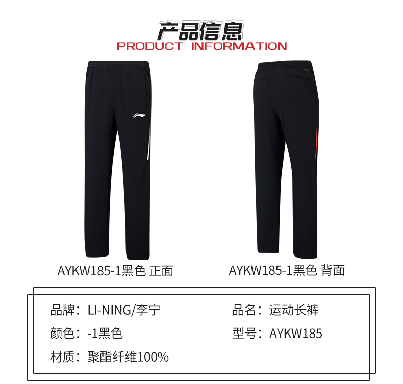 李宁羽毛球服省队系列比赛男女同款训练服AYKW185-1运动长裤