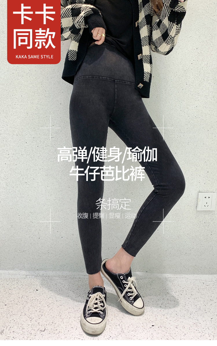 卡卡同款牛仔芭比裤高腰收腹提臀打底裤子女装加大码瑜伽收腰收胯