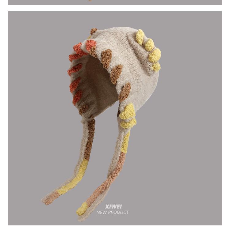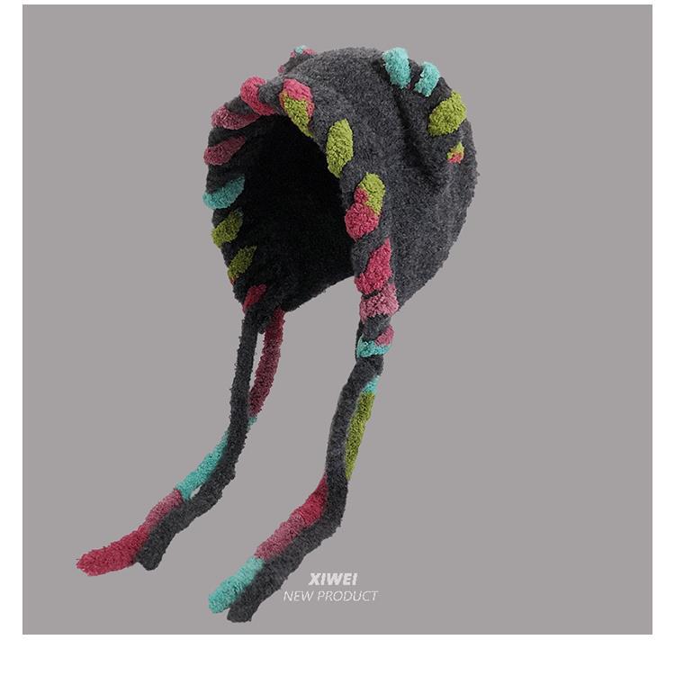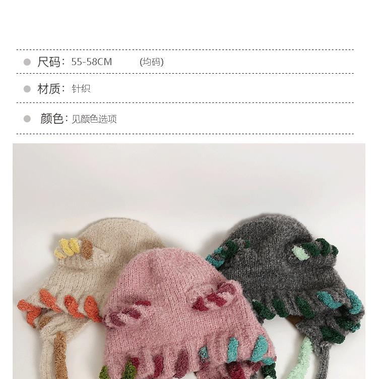 多巴胺猫耳朵毛绒帽女秋冬显脸小针织包头帽秋冬保辫子护耳毛线帽