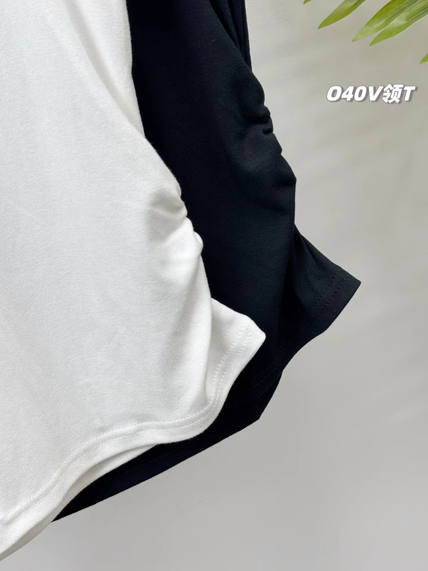 F031260一包2件装新款时尚百搭纯色简约修身轻便舒适V领款小蛮腰短袖