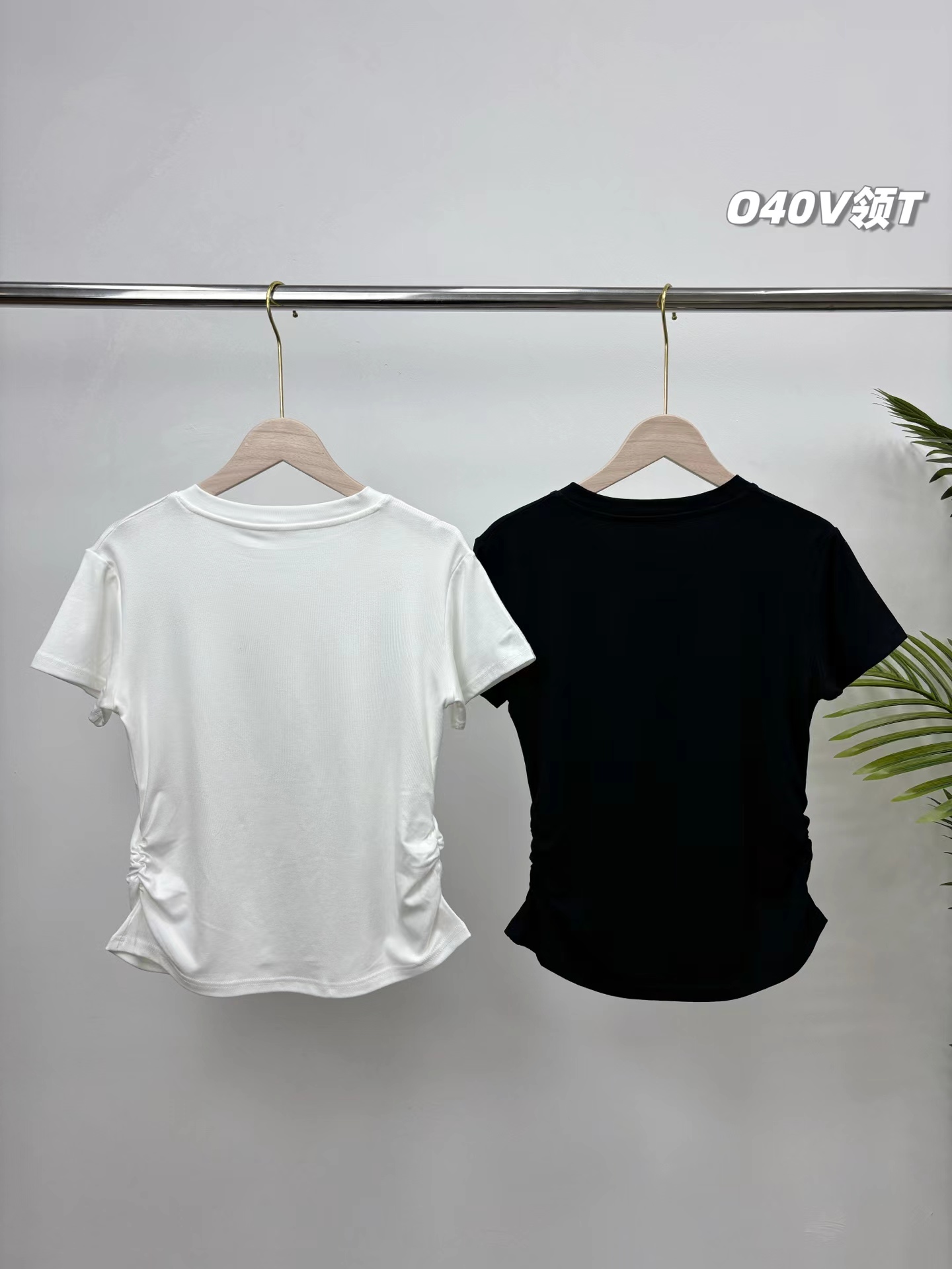 新款V领款小蛮腰立体腰线短袖,高弹力短袖上衣!真的超j百搭好看!进口超细莫代尔棉,绝d的z易清洗、易干,不闷汉,透气性良好!弹力超j大,柔软又细腻,穿上真的巨舒服!亲自上身体验了一下,超j轻柔,无任何束缚感,手感垂顺,面料柔软关键是。轻便又舒适!立体瑜伽版型的设计,修身腰线,完m遮肉不臃肿,尽显好身材。回弹力好,不松垮不变性,上身超j显精神的!纯色简约的设计,低调内敛又尽显性感曲线,适合任何年龄段,任意场合,脑补上身效果!