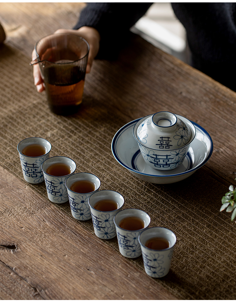 永利汇功夫茶具陶瓷中式套装家用简约客厅盖碗茶杯桐木礼盒盒装