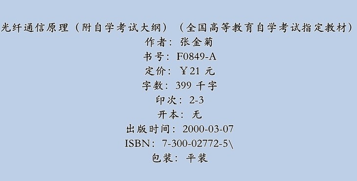 自考 光纤通信原理 02338(附自学考试大纲)张金菊 人大出版社