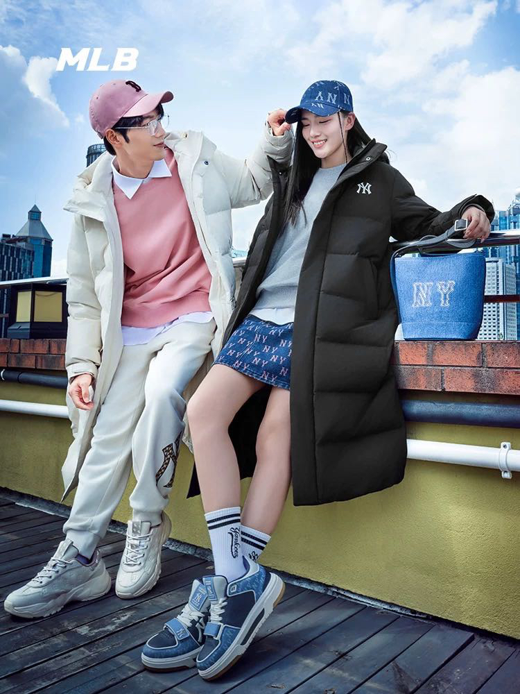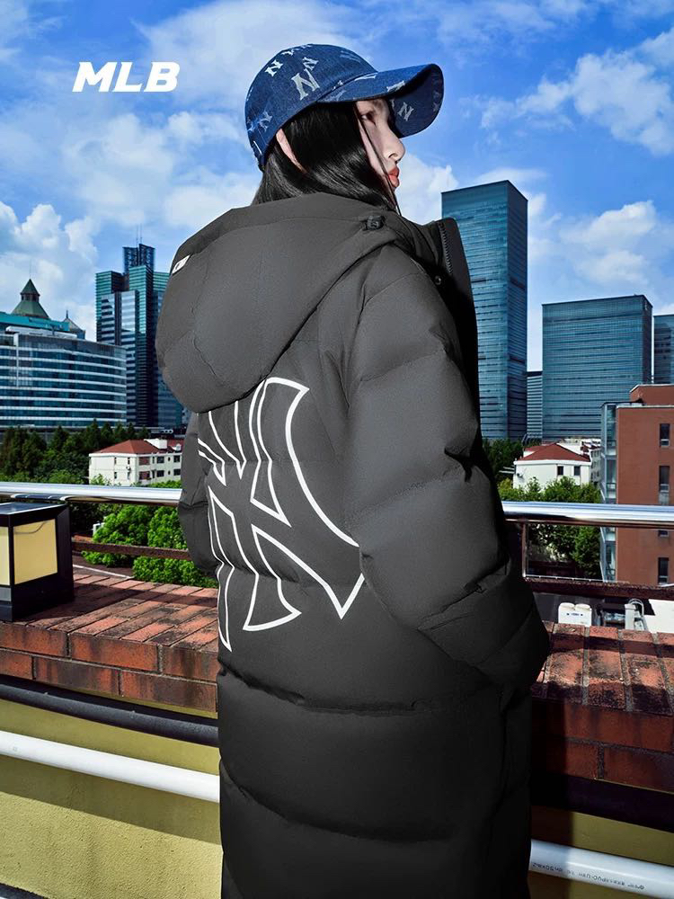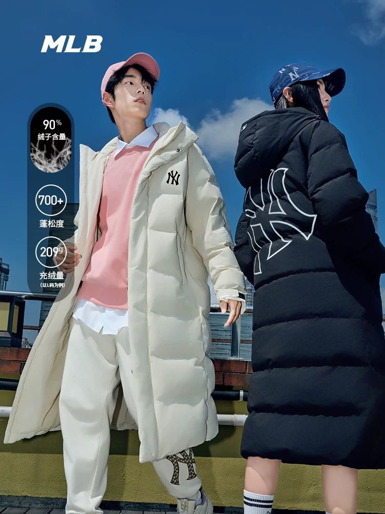 大联盟 原单 男女同 后背大字母 长款羽绒服