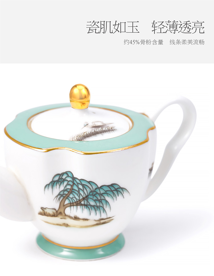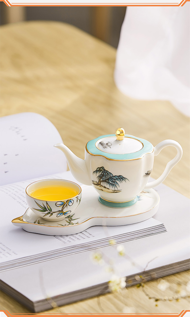 【6F】玛戈隆特 M20单人茶具套装骨瓷整套茶具带茶盘 家用泡茶功夫茶具套装 礼盒礼品包装 3头西湖盛宴莲蓬