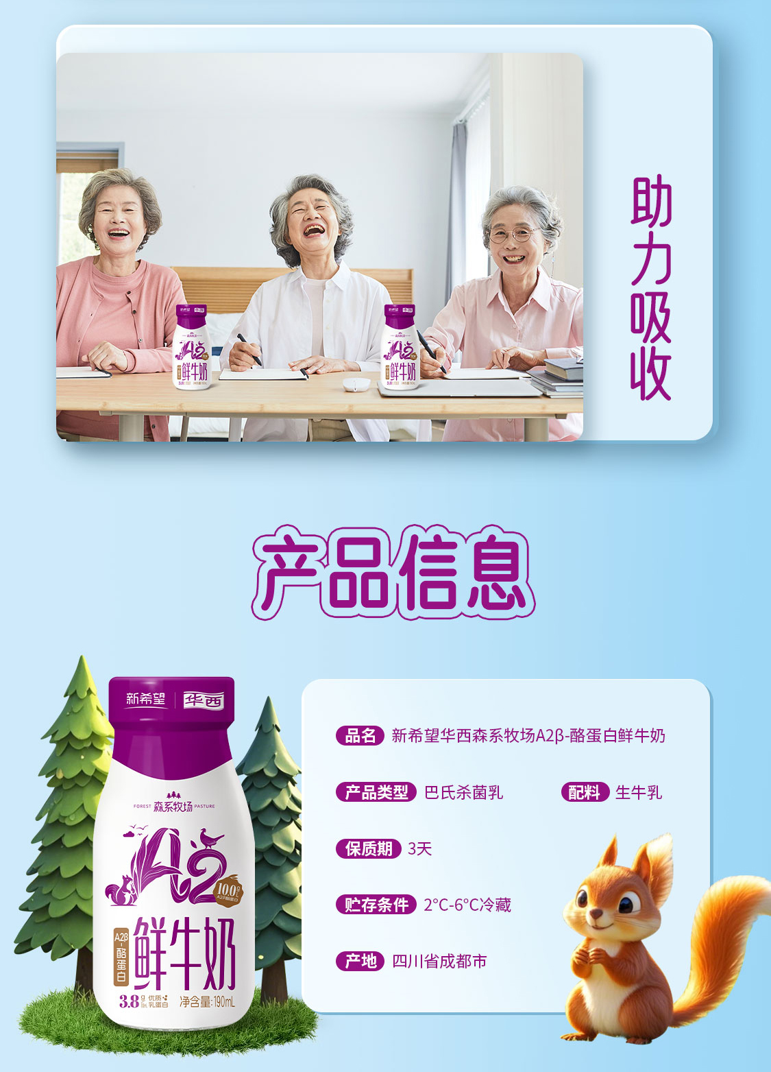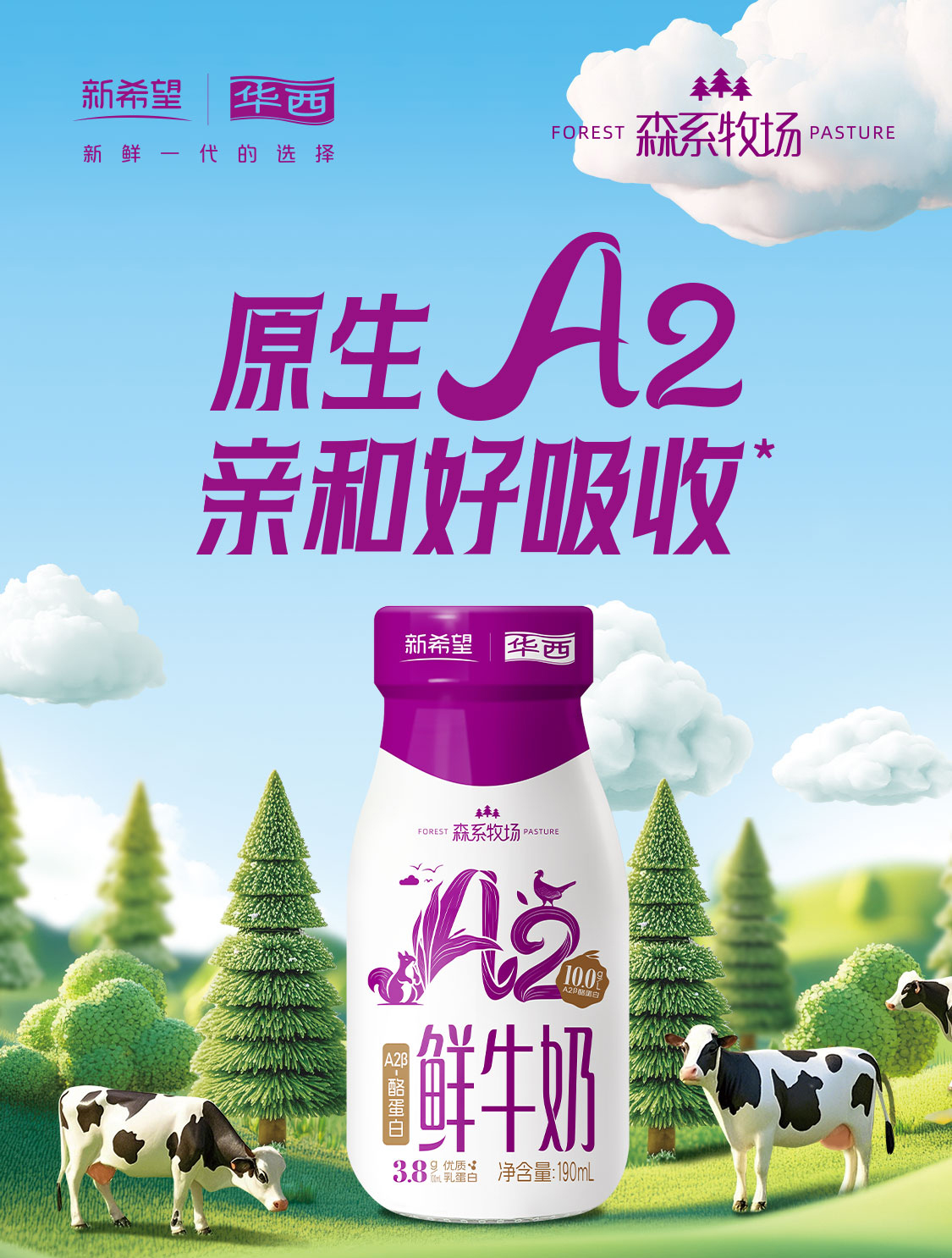 新希望(华西)玻璃瓶森系牧场A2鲜牛奶190ml
