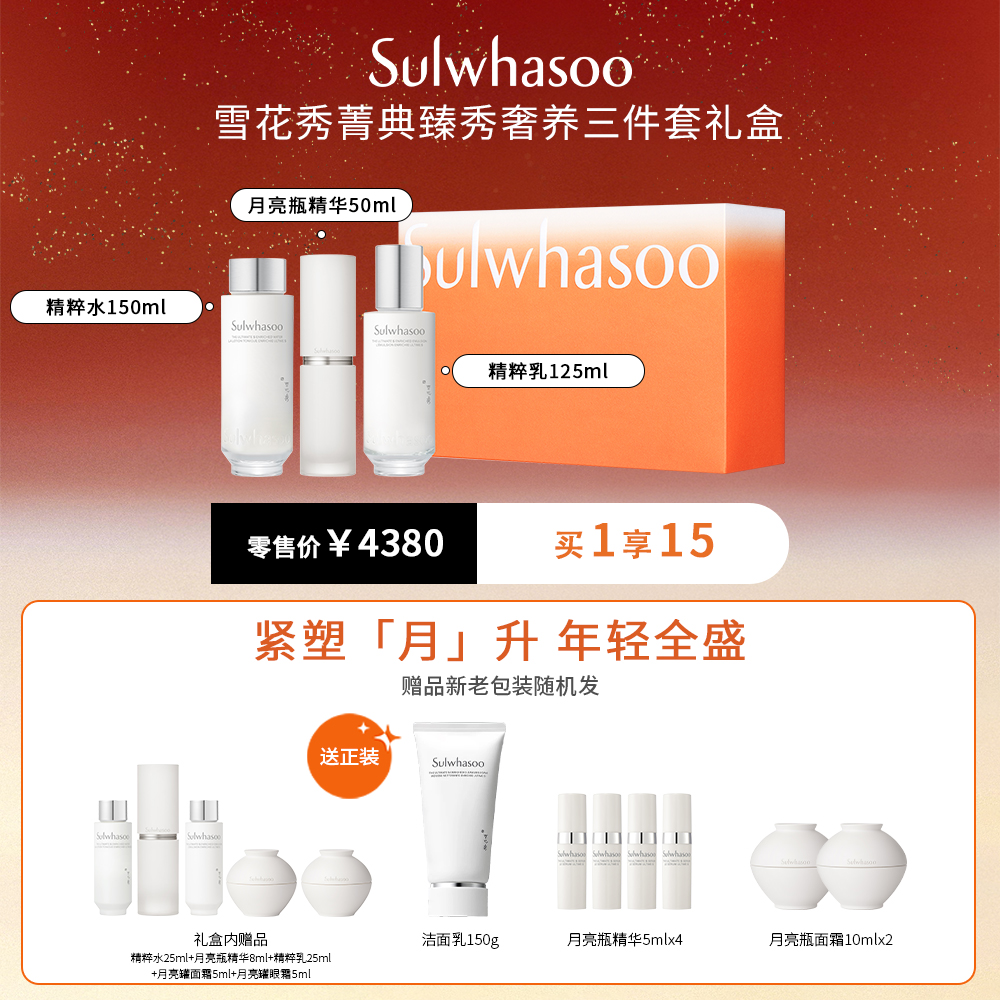 【国际妆品】雪花秀菁典臻秀精华50ml+菁典臻秀礼盒150ml+125ml 含:月亮瓶精华8ml月亮罐面霜5ml月亮罐眼霜5ml月亮水25ml月亮乳25ml洁面150G面霜10ml*2精华5ml*4