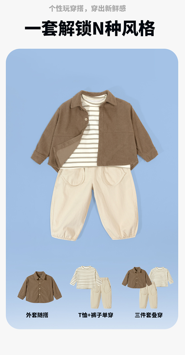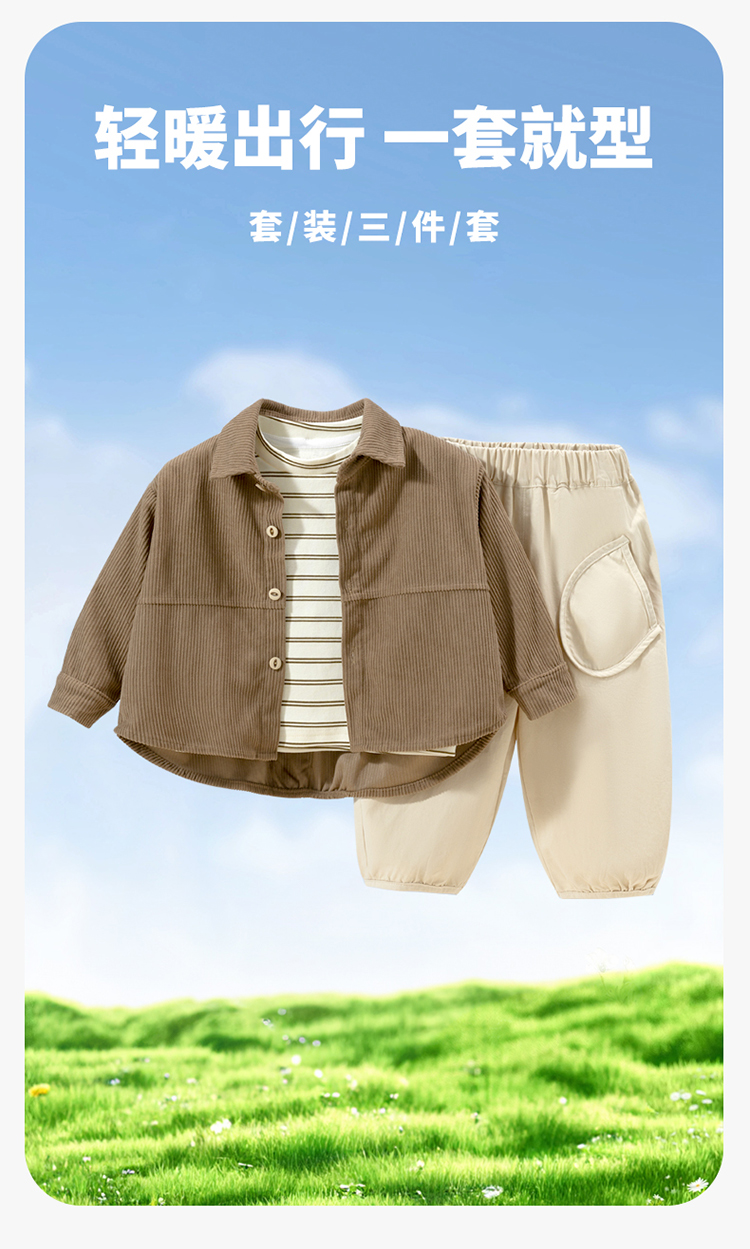 2024春季男童休闲套装时尚百搭衬衫外套+T恤+裤子三件套ZB1DT014