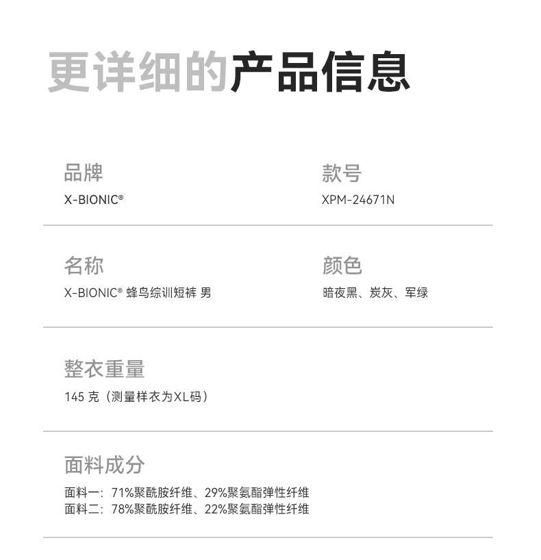 X-BIONIC 蜂鸟综训短裤 男子跑步运动户外综合训夏季XPM-24671N