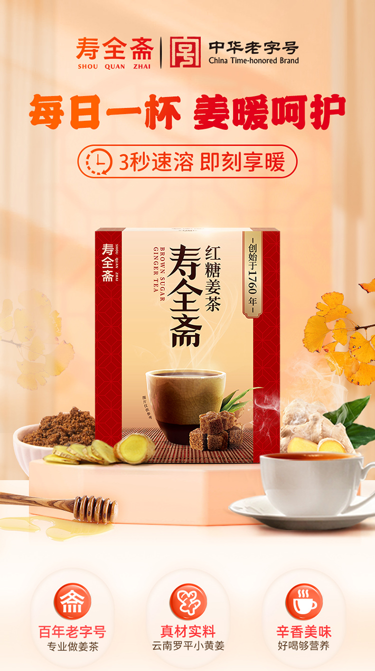 【寿全斋】红糖姜茶小黄姜蜂蜜秋冬热饮姜汤姜枣茶120g