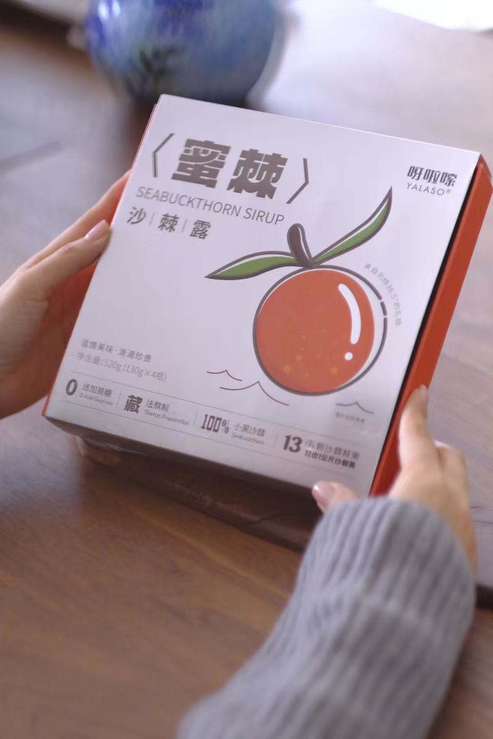 挂在树上的青藏高原高海拔小果沙棘0香精0色素0防腐剂0蔗糖 藏法熬制13万颗沙棘鲜果才有一公斤沙棘露 520g (130g*4瓶)/盒