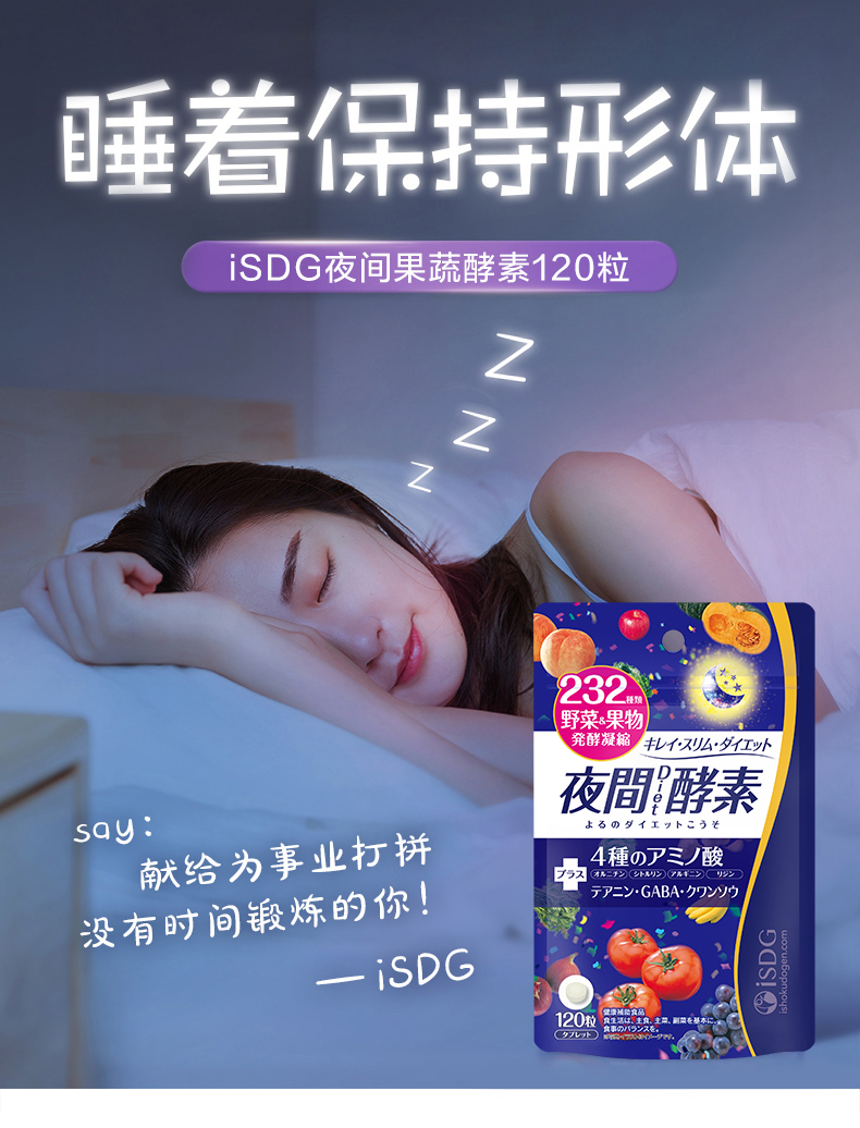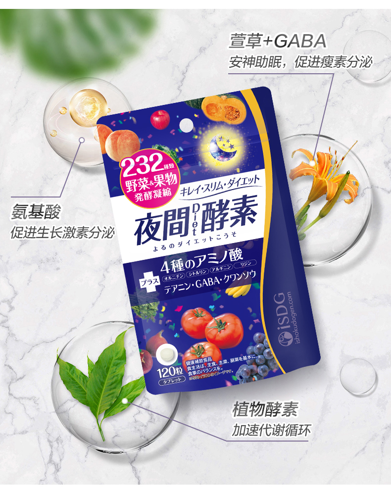 【香港直邮】日本进口夜间酵素232种果蔬肠润120粒/袋孝素肠清宿便排果冻