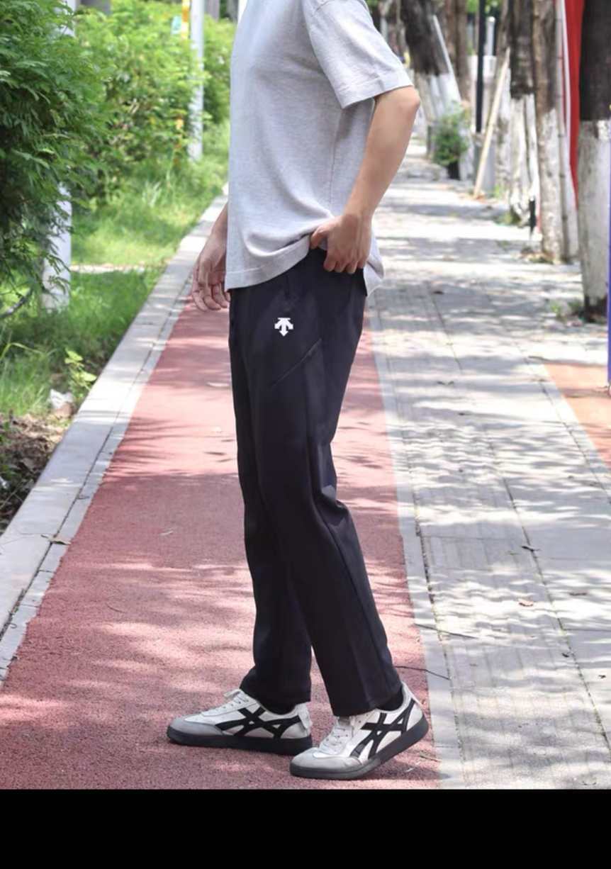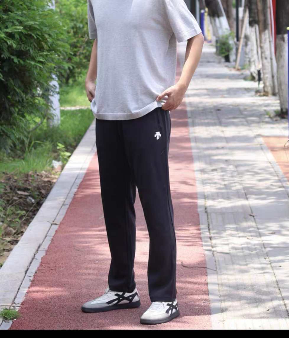 松紧弹力可调节腰围 大腿处黑标logo ,直筒设计 休闲通勤皆可;