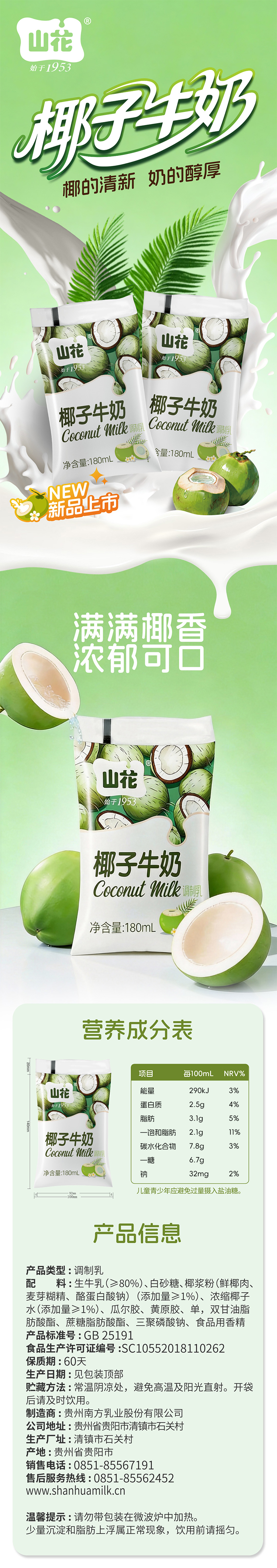 山花百利包椰子牛奶180mL*16袋口感香甜