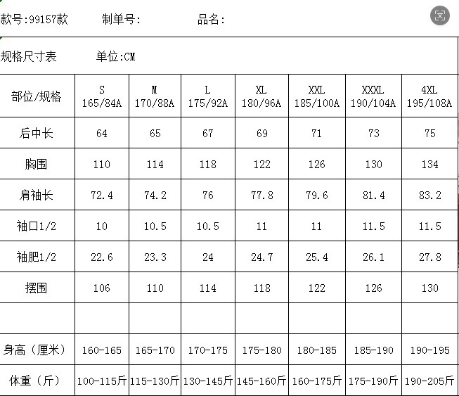 尺码:S-4XL