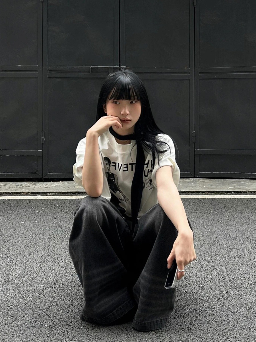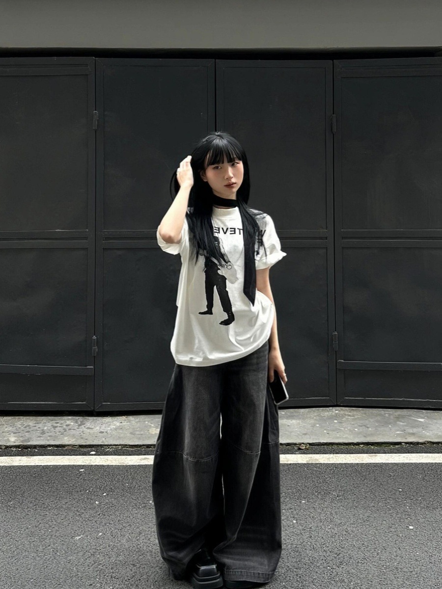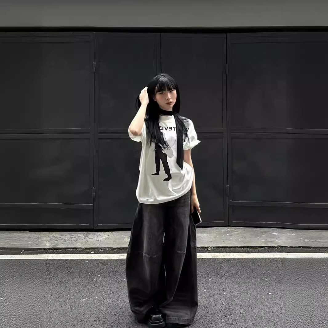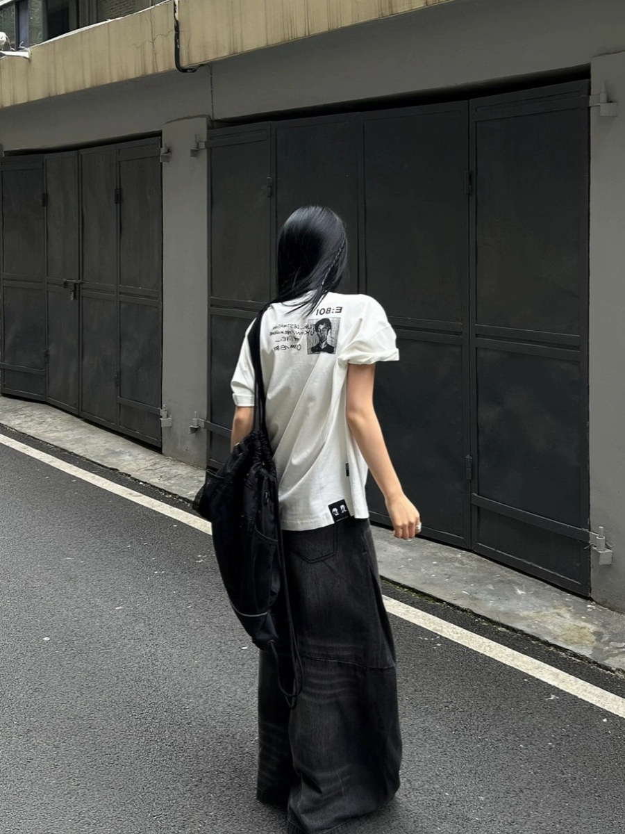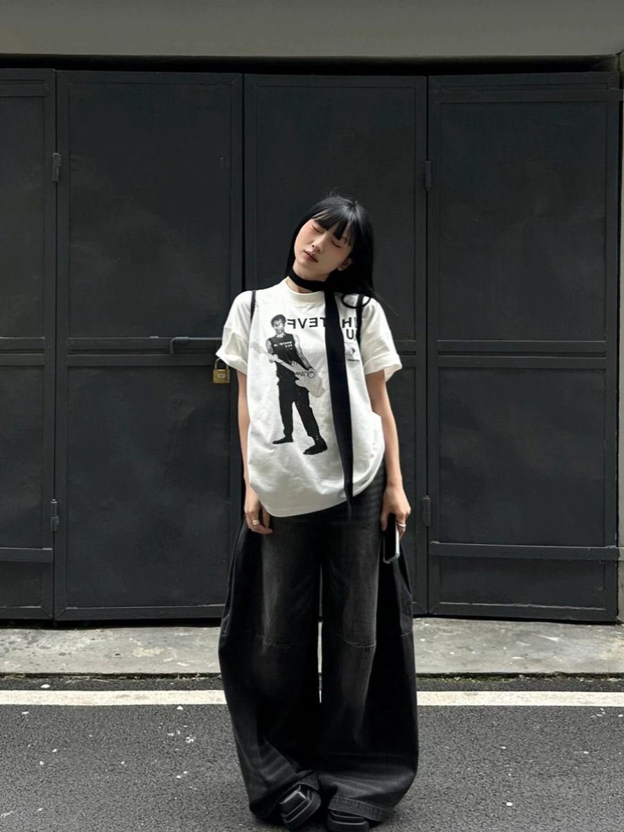 【小众设计感❗️复古吉他手印花T恤】不挑身材的微阔剪裁,完美包容腰腹赘肉与宽胯,打造随性 “下衣失踪” 穿法,遮肉藏胯,梨形身材随便穿,夏季高街情侣大码短袖oversize上衣潮L