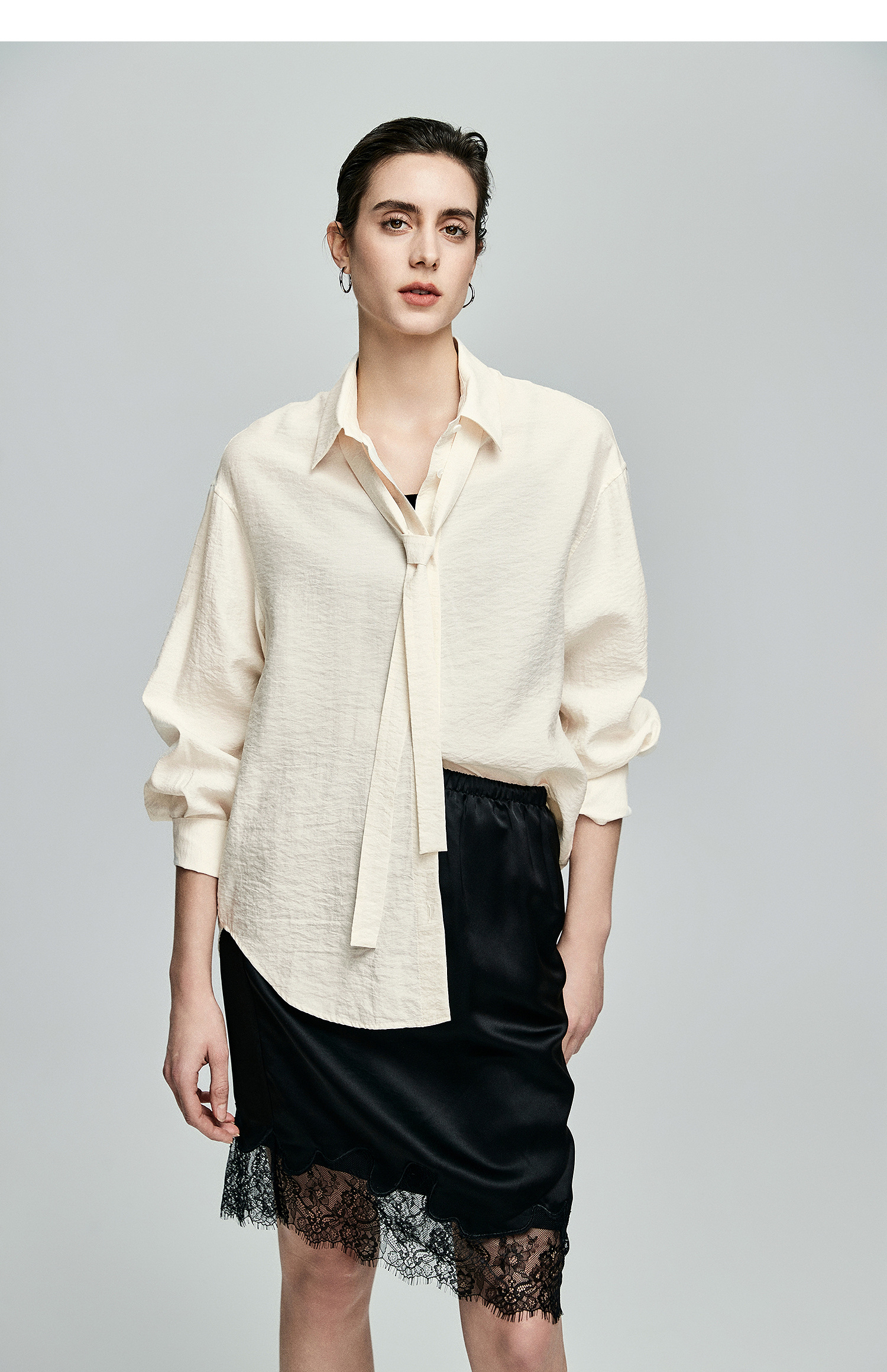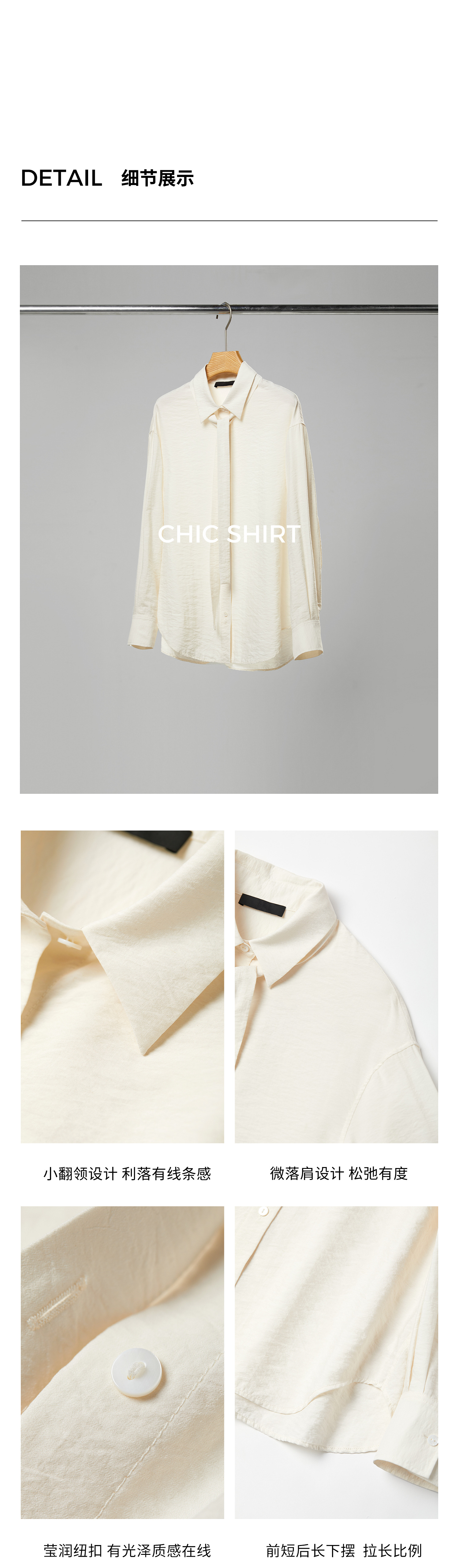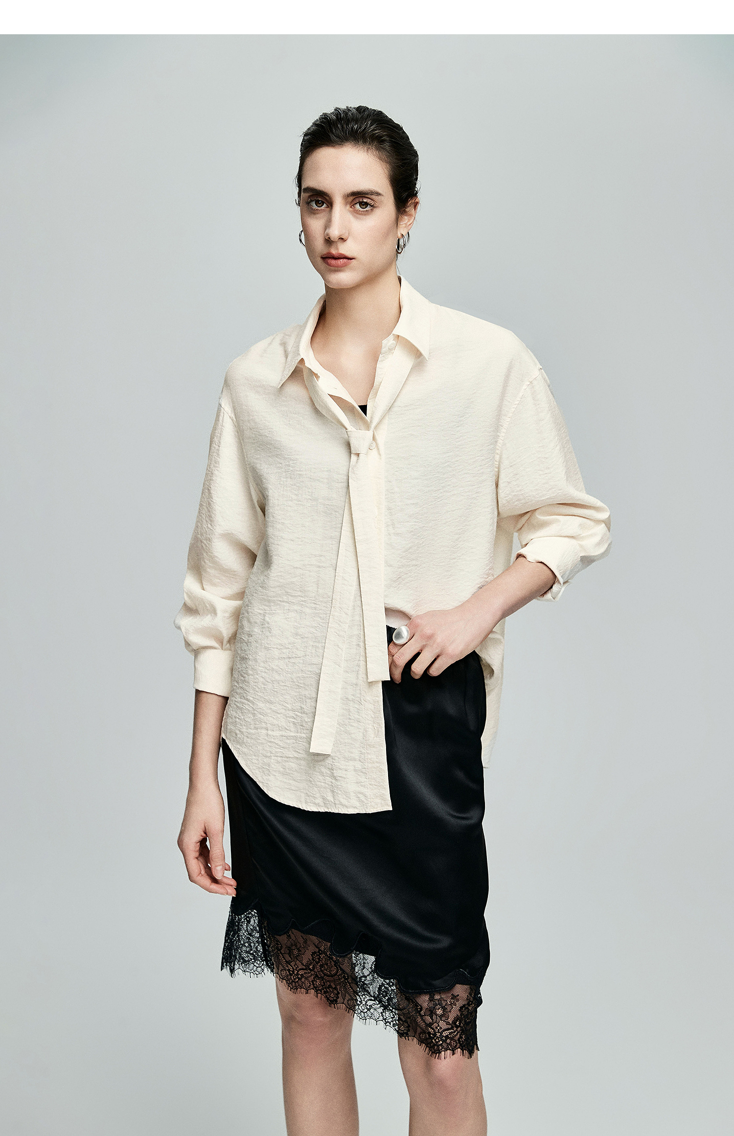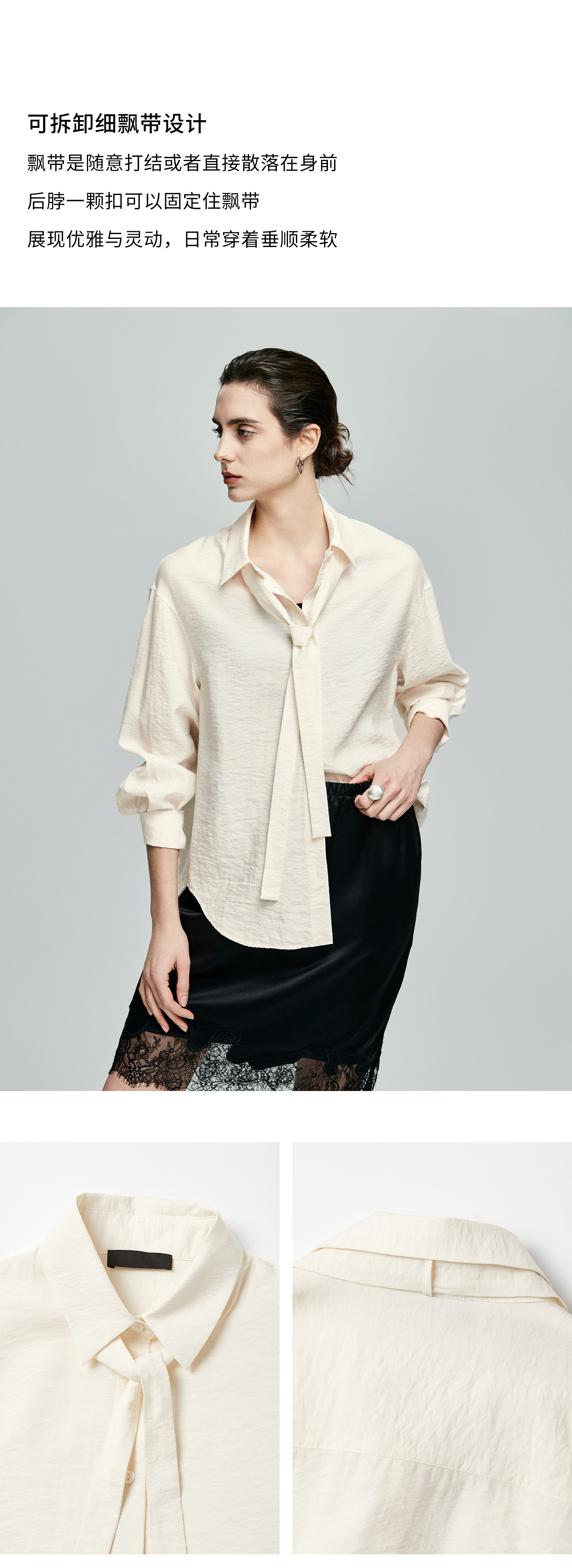 棉仓362604007-初棉可拆卸飘带长袖纸皱感衬衫