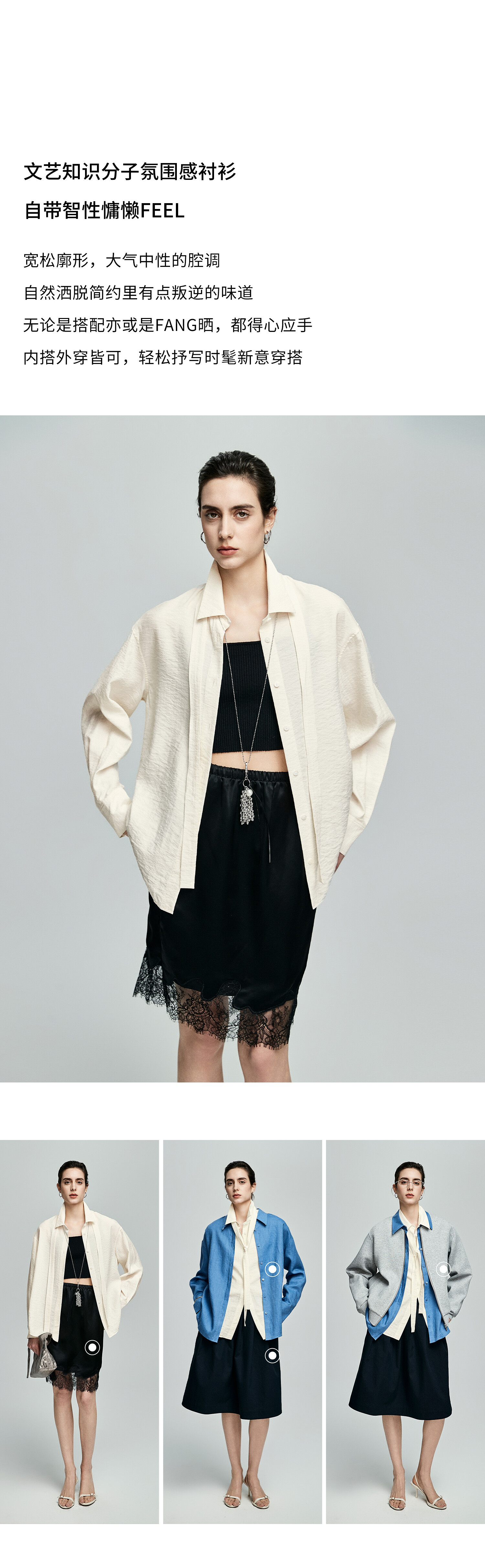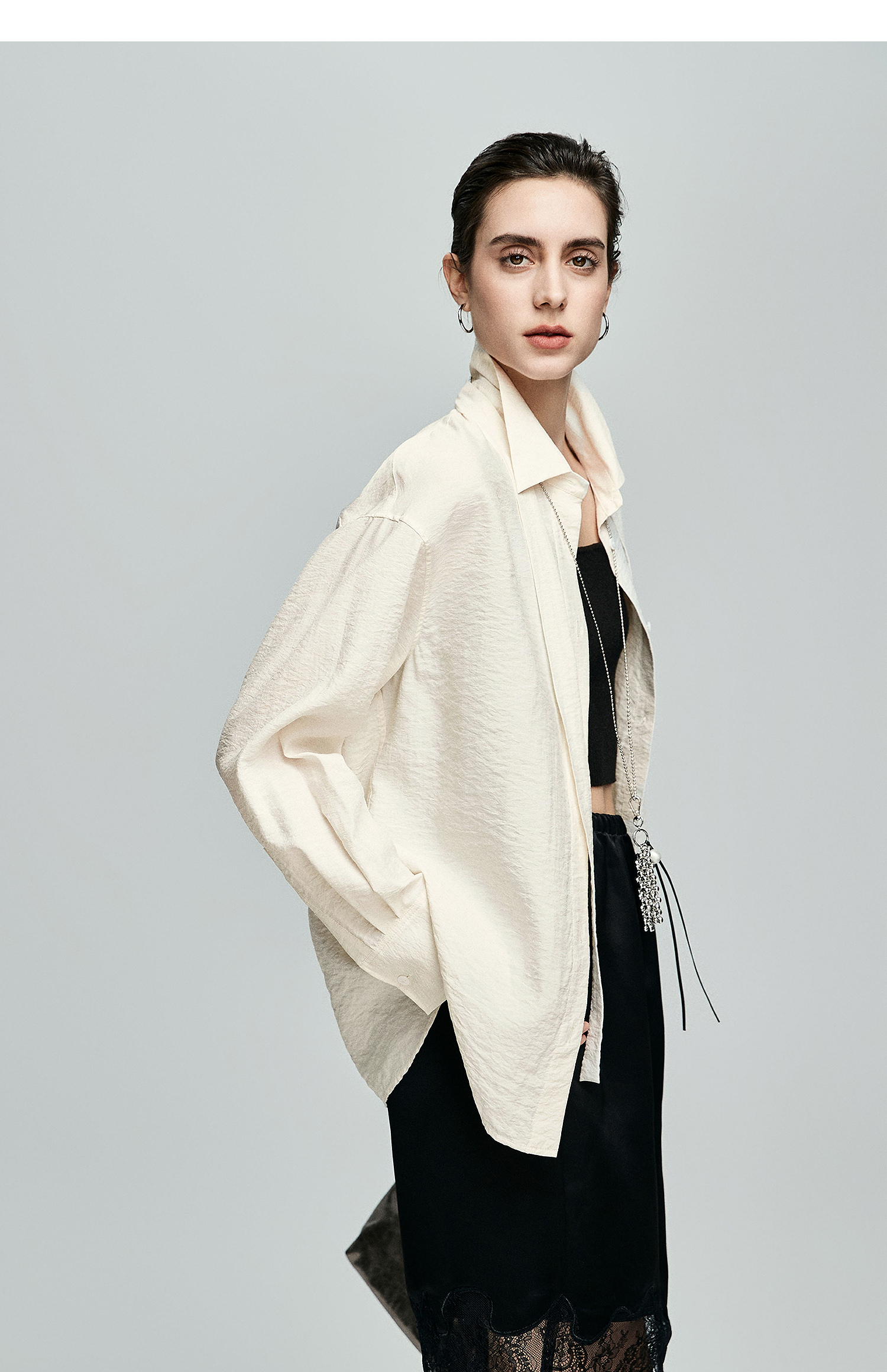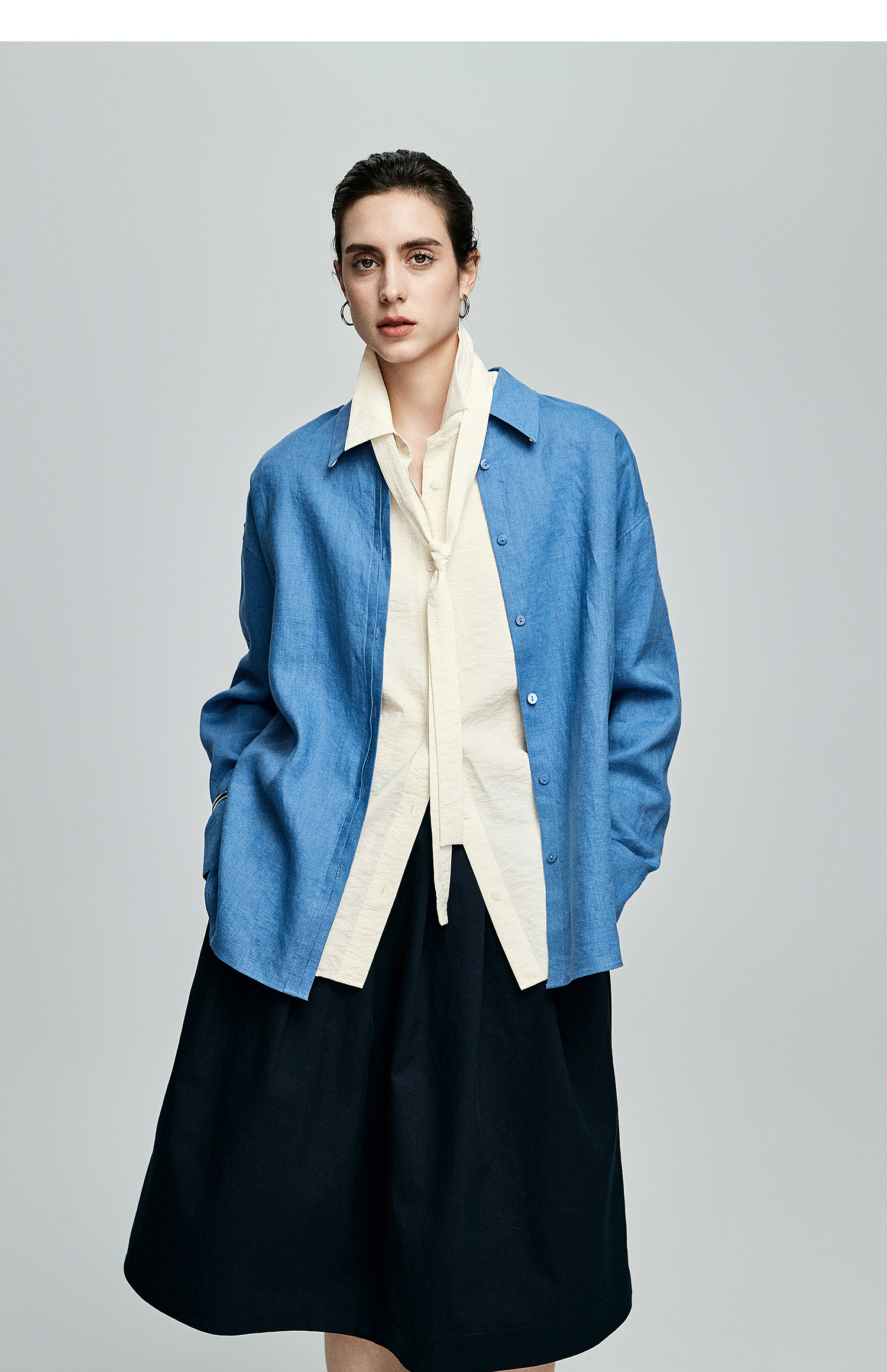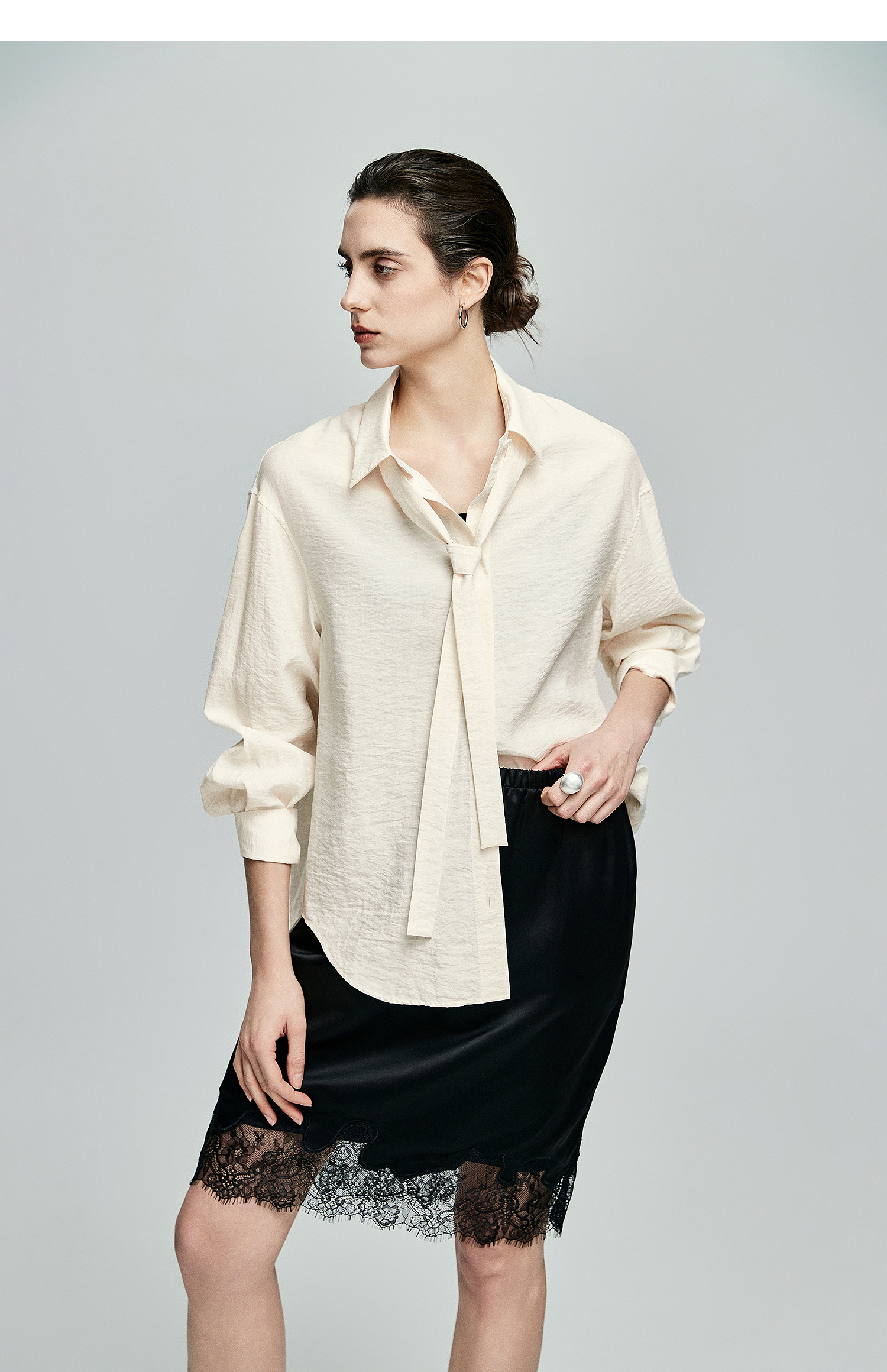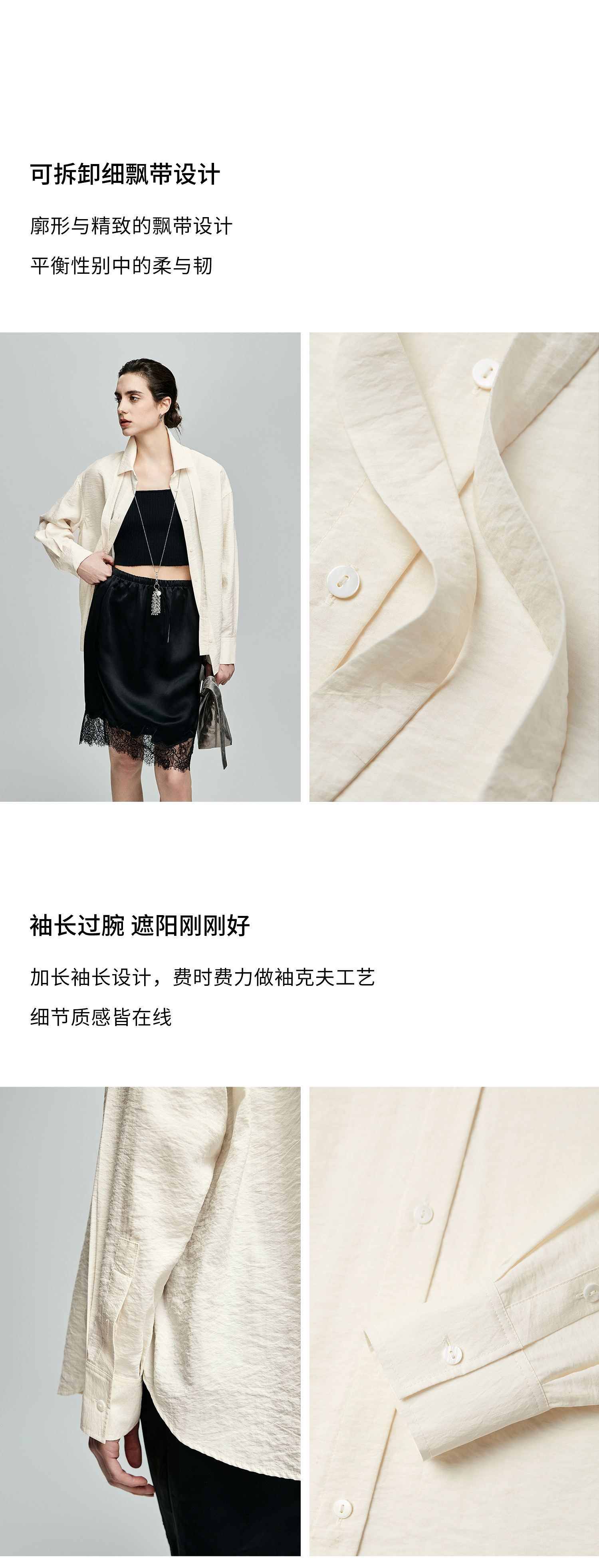 棉仓362604007-初棉可拆卸飘带长袖纸皱感衬衫