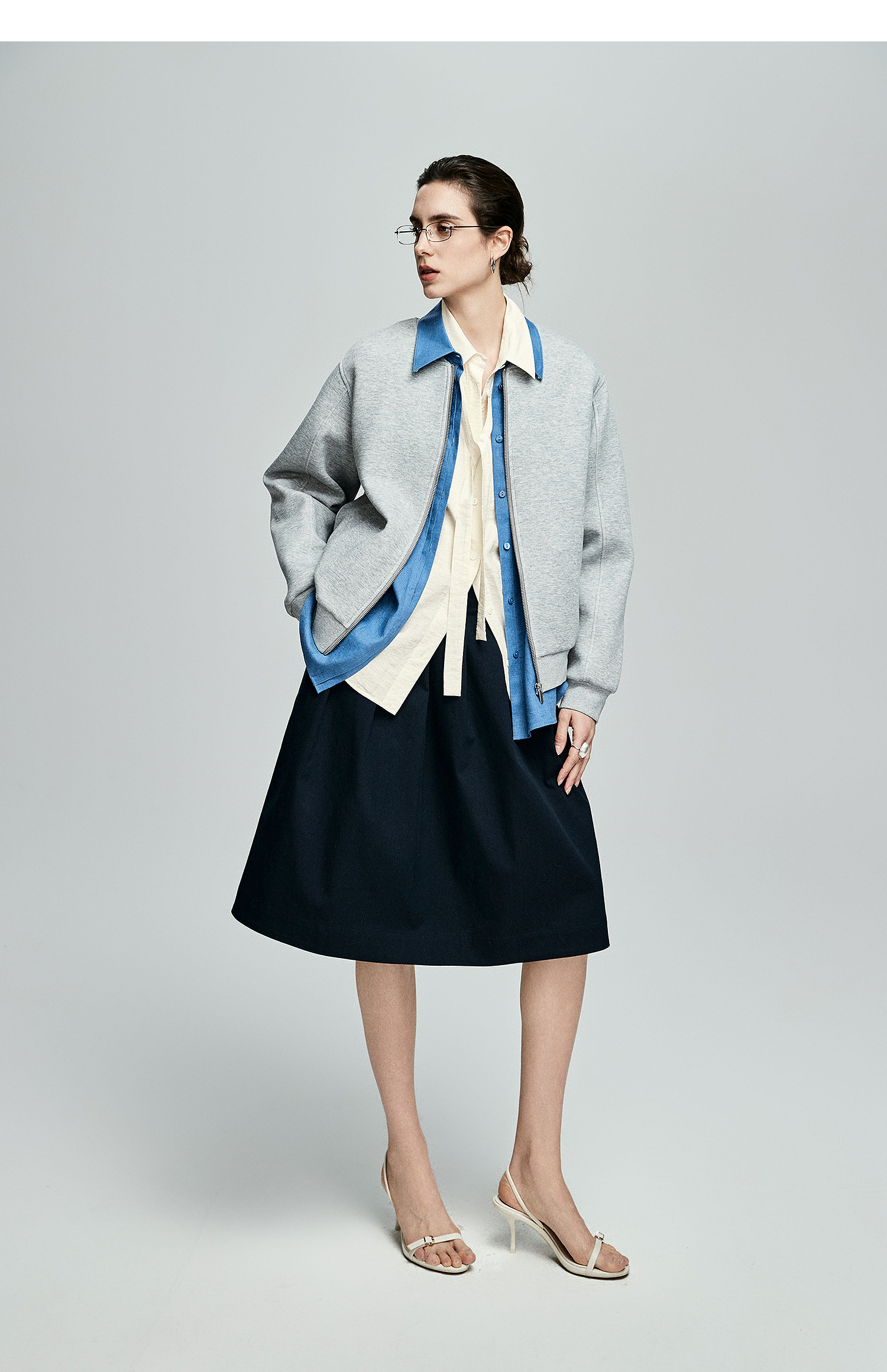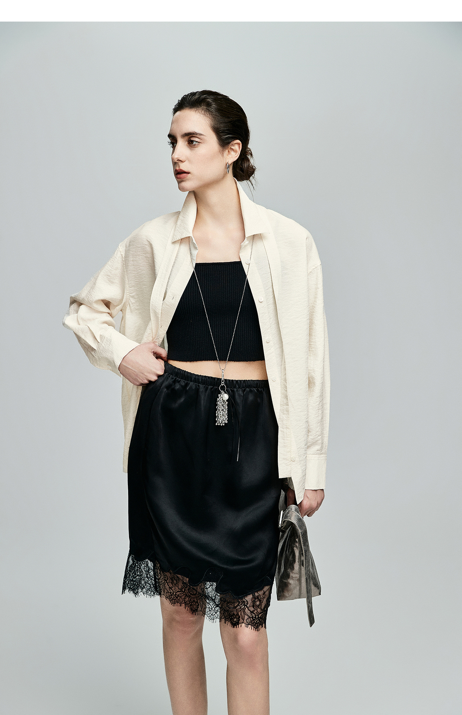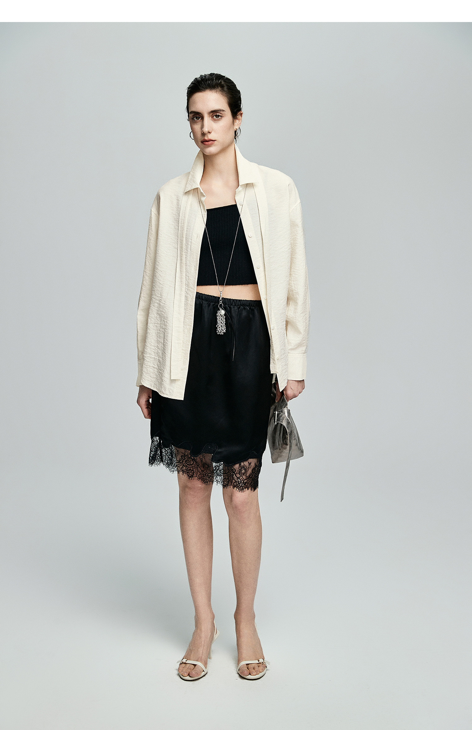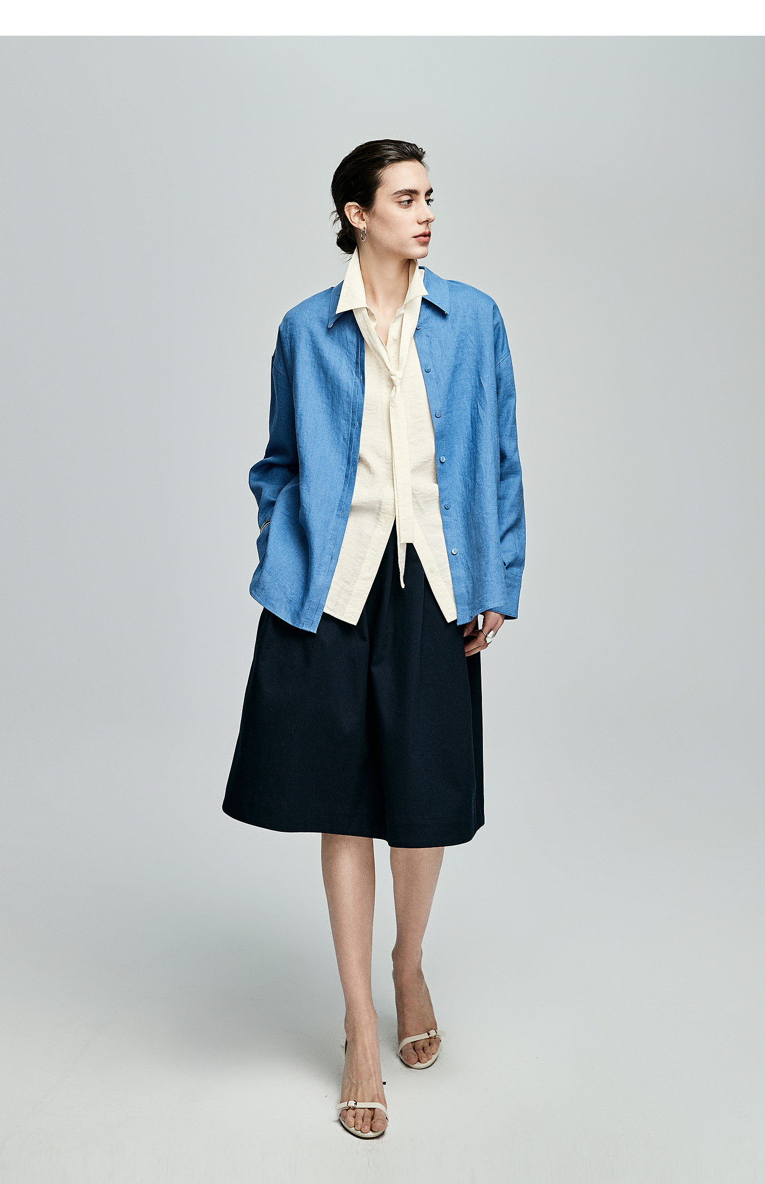 棉仓362604007-初棉可拆卸飘带长袖纸皱感衬衫