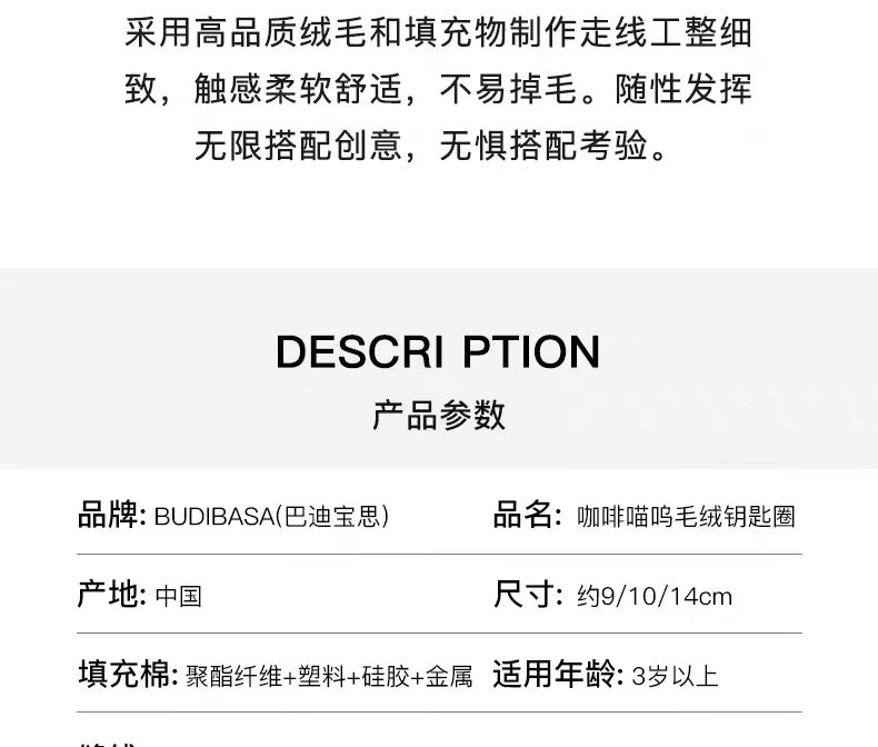 4楼Eubelle欧蓓 BUDIBASA巴迪宝思咖啡猫玩偶甜品毛绒玩具钥匙圈 包包挂饰 活动价:78-80元