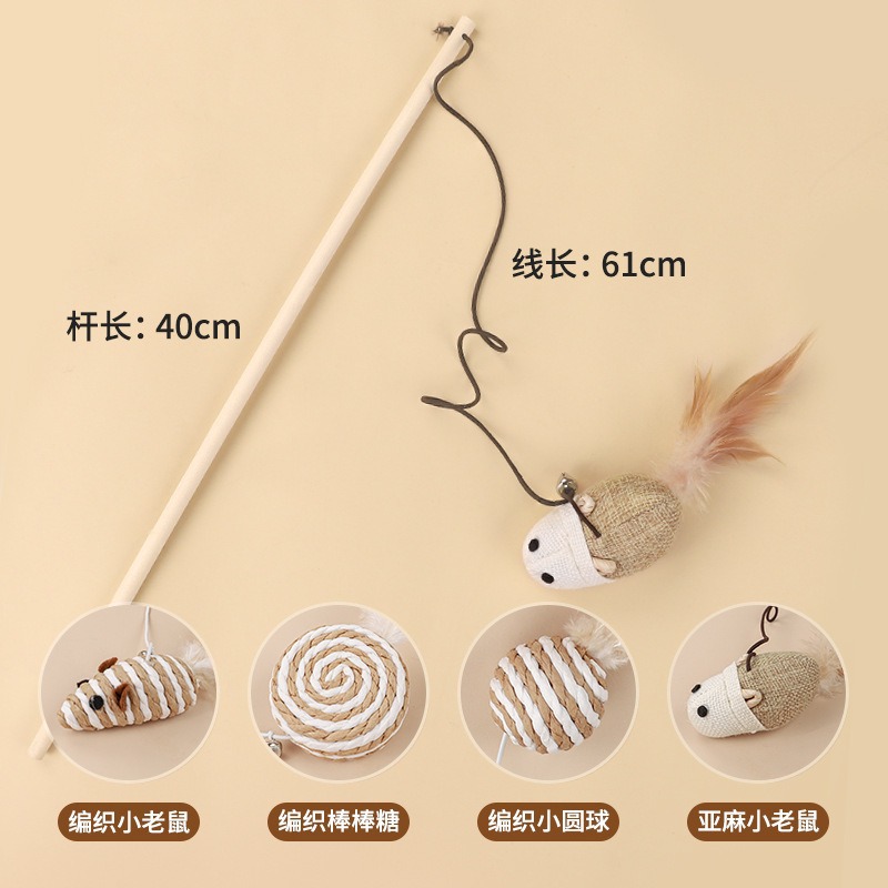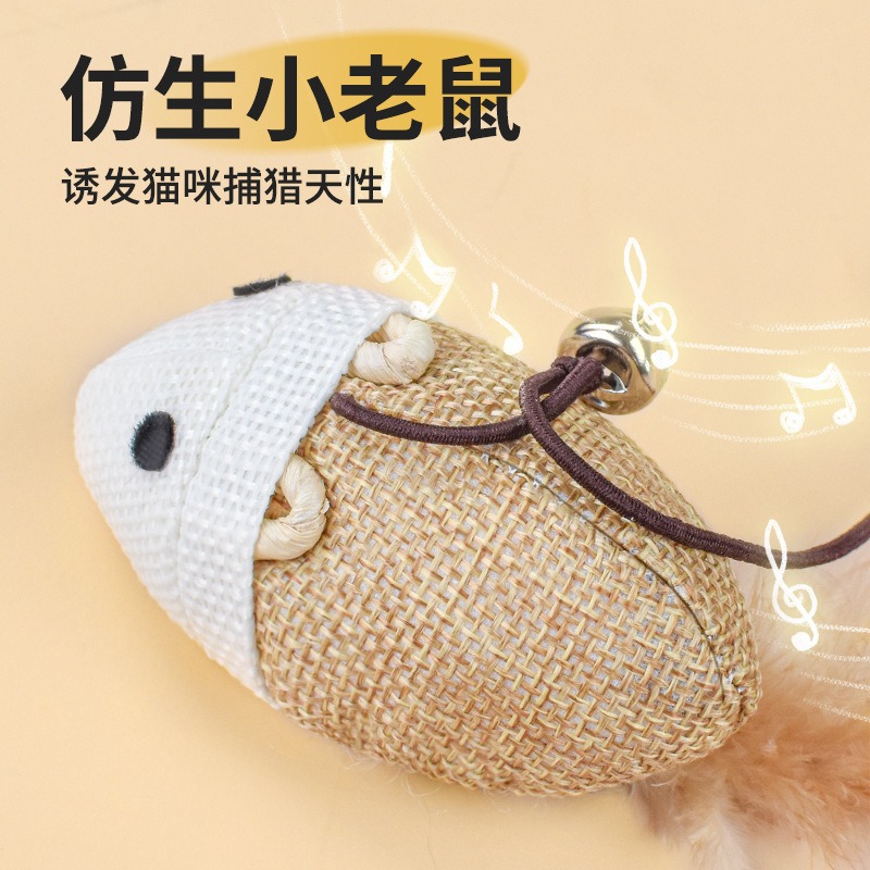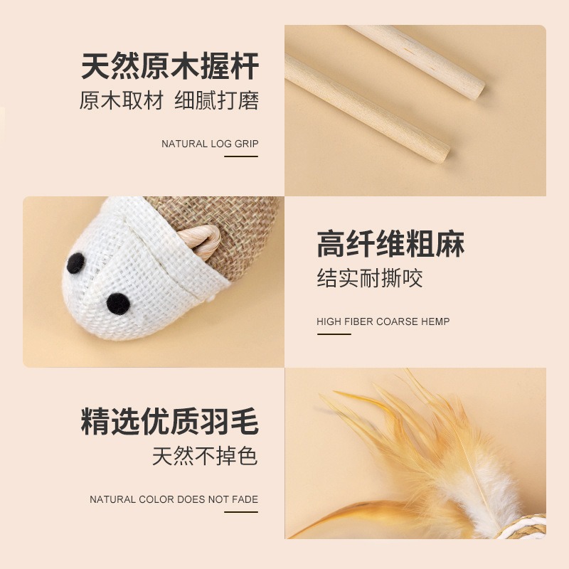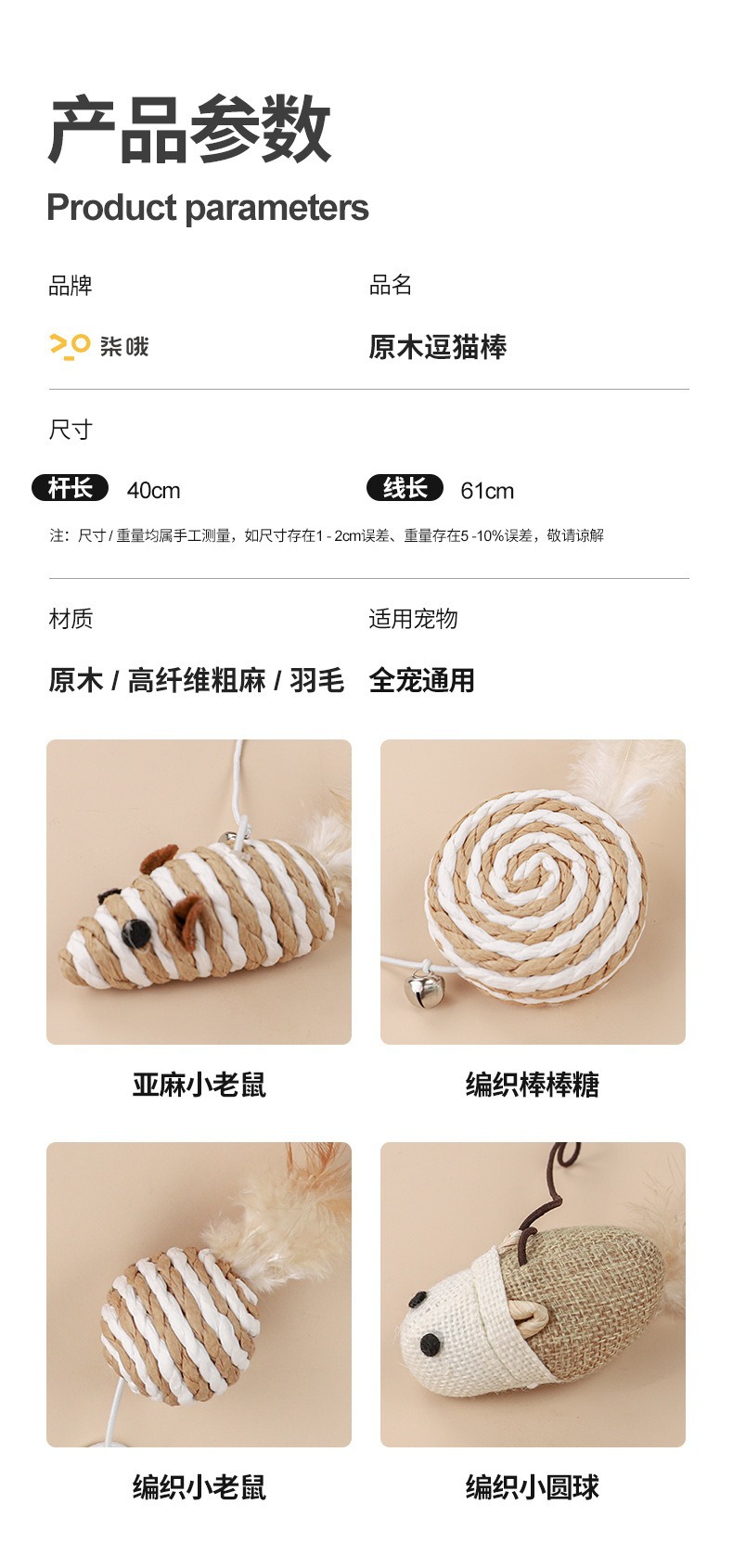 【原木手工逗猫棒】猫玩具逗猫棒猫咪自嗨可爱仿真小老鼠解闷带铃铛耐咬网红小猫用品。ry