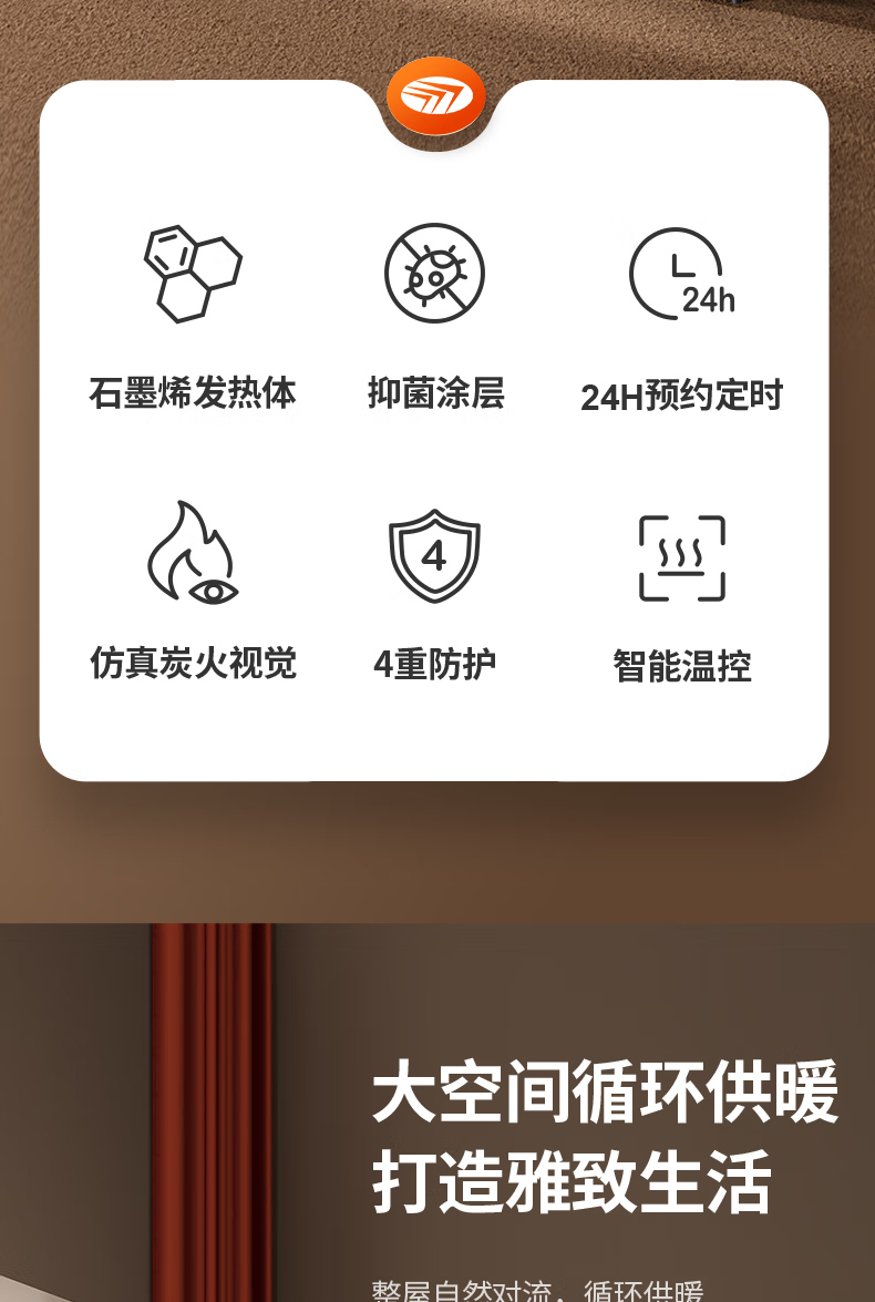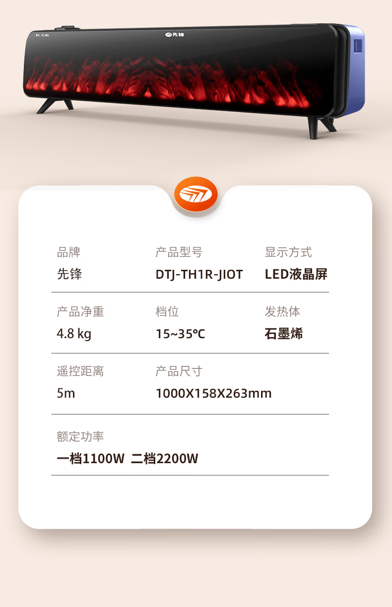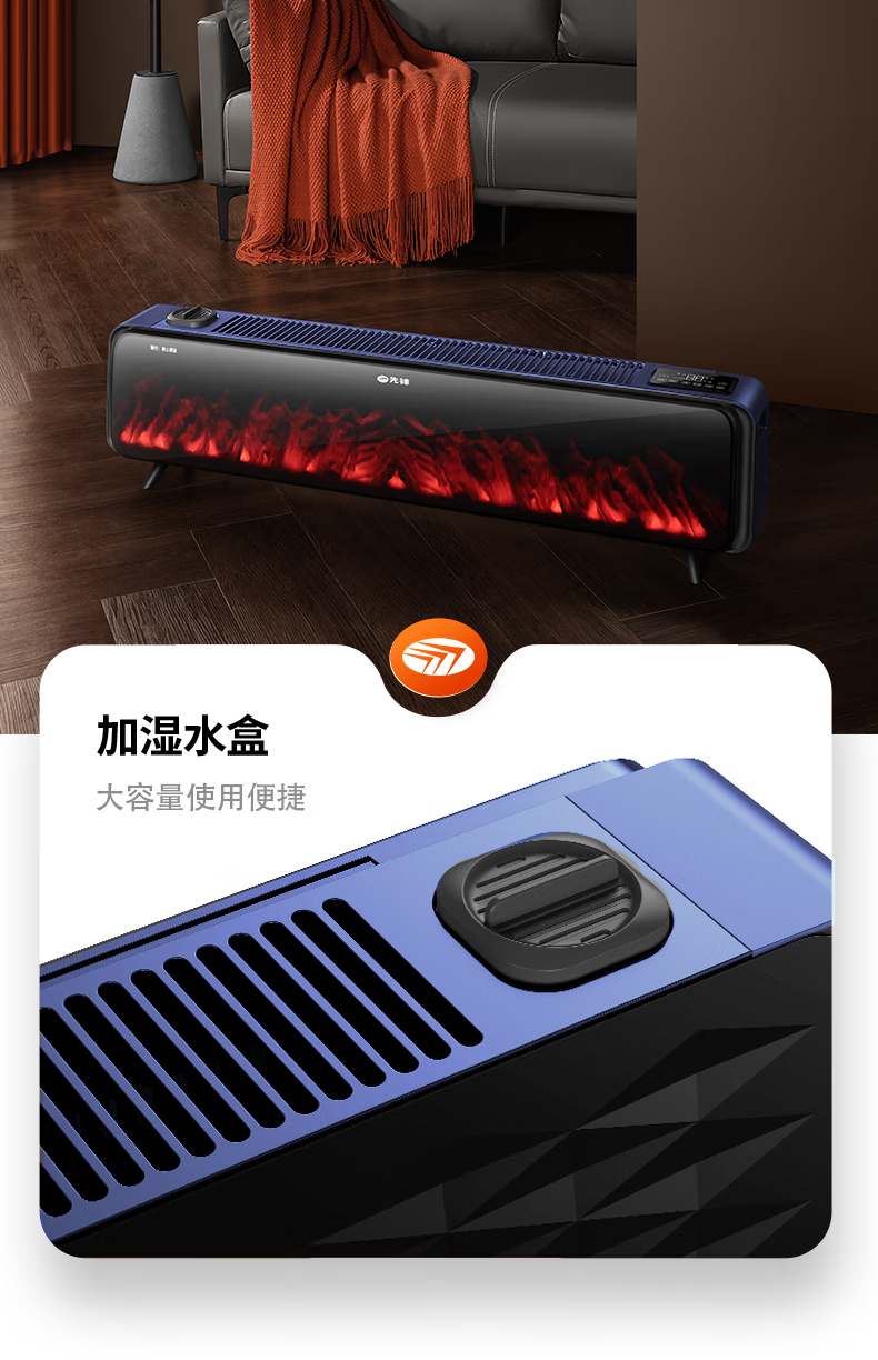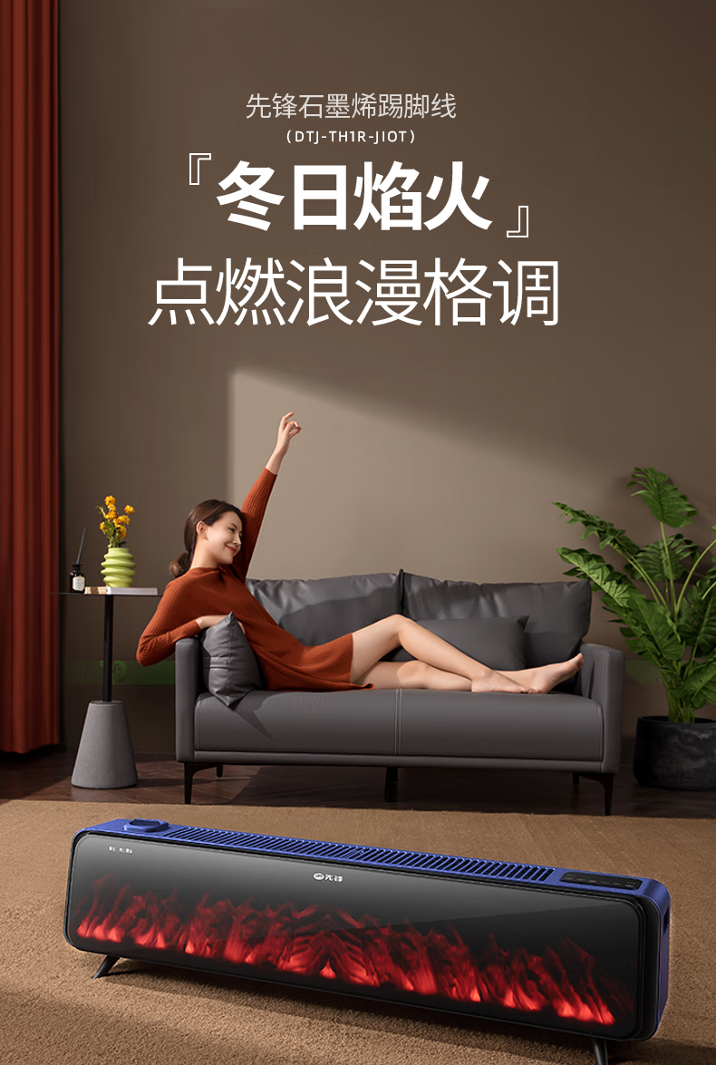 先锋(SINGFUN)石墨烯踢脚线取暖器家用智能控温防水电暖器仿真火焰电暖气大面积速热移动地暖 3D仿真炭火/DTJ-TH1R-JIOT(蓝)