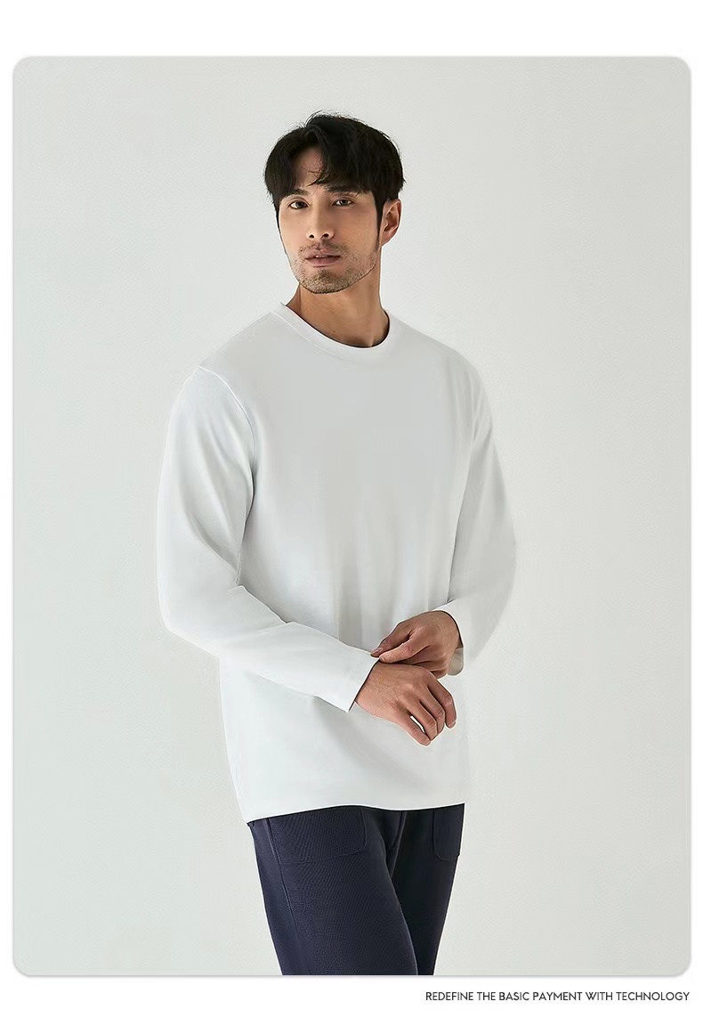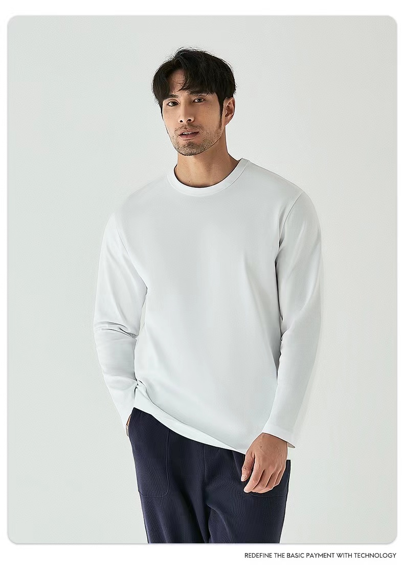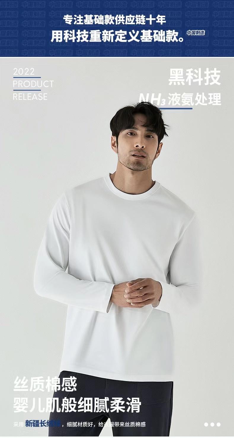 2026最新款黑科技NH3液氨处理自带凉感男款长袖T袖,婴儿肌般细腻柔滑,采用2026新疆长绒棉,微微细棉超柔,亲肤感很棒。材质好,贡棉感~不变型不起球。