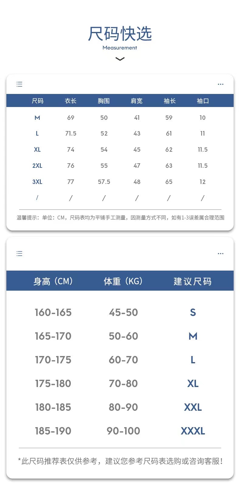 尺码参考: