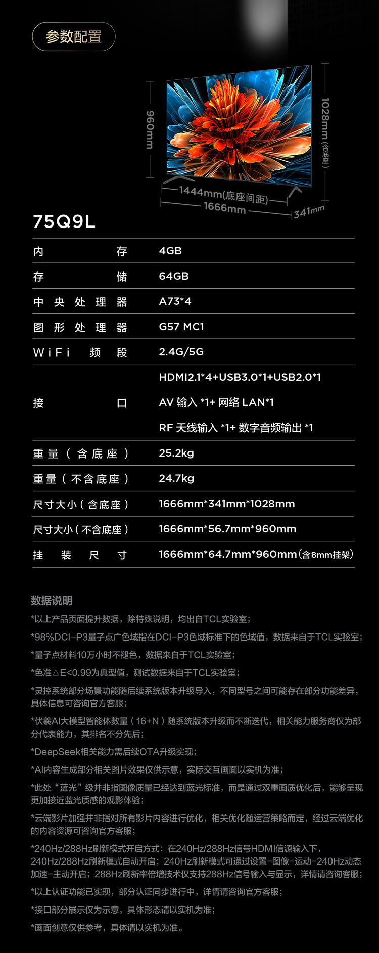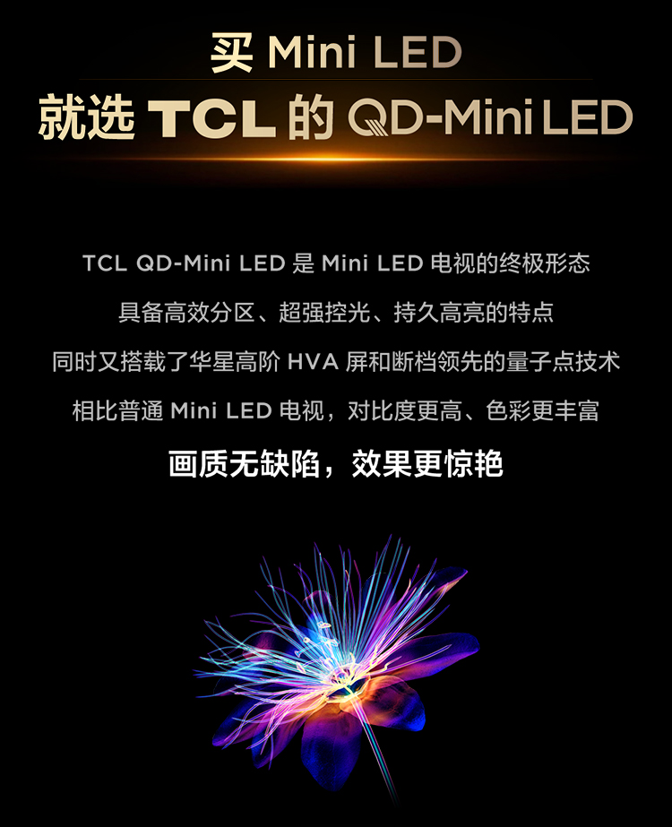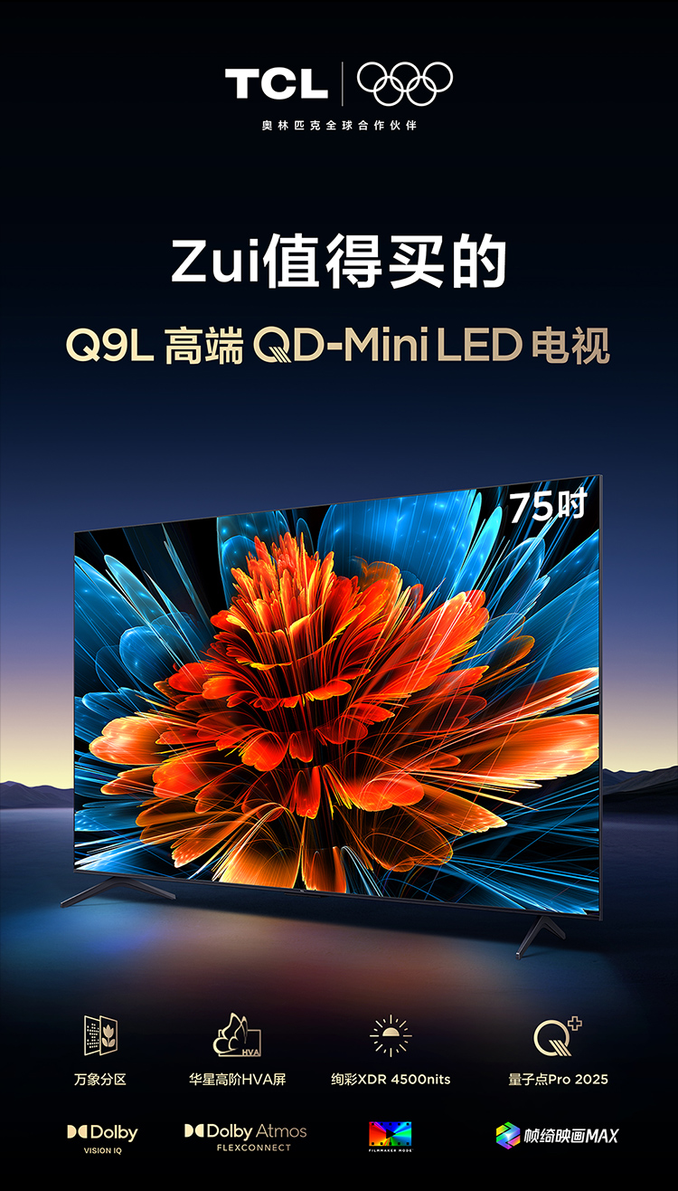 TCL电视 75Q9L 75英寸 QD-Mini LED 华星高阶HVA屏 万象分区 绚彩XDR 4500nits 超薄电视