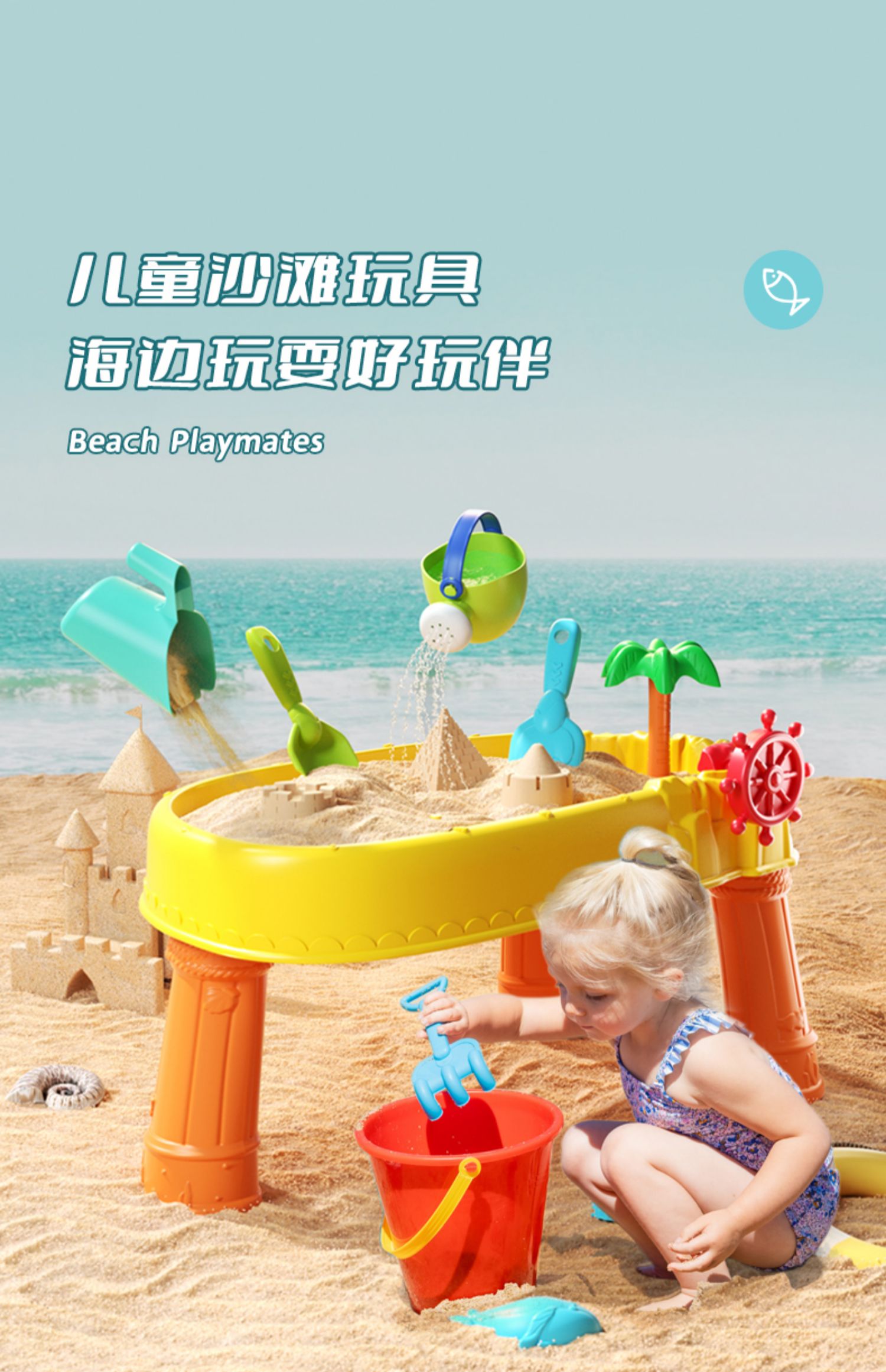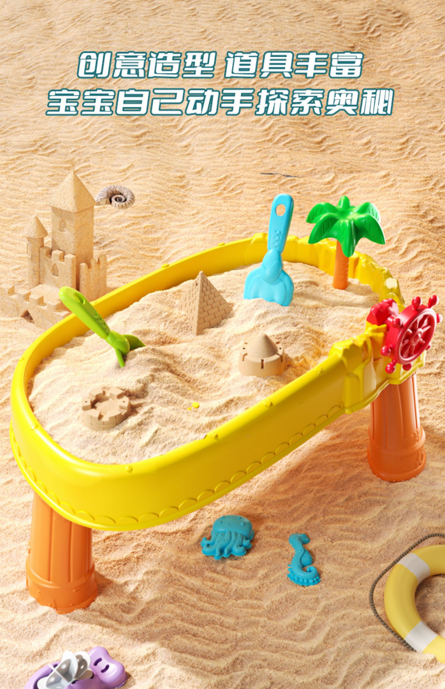 【海边玩耍好玩伴】儿童沙滩桌玩具 创意造型 桌腿可拆卸 收纳便捷 不占地 海边玩沙池子套装