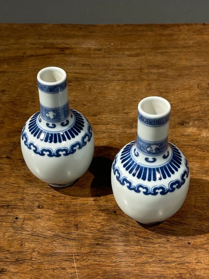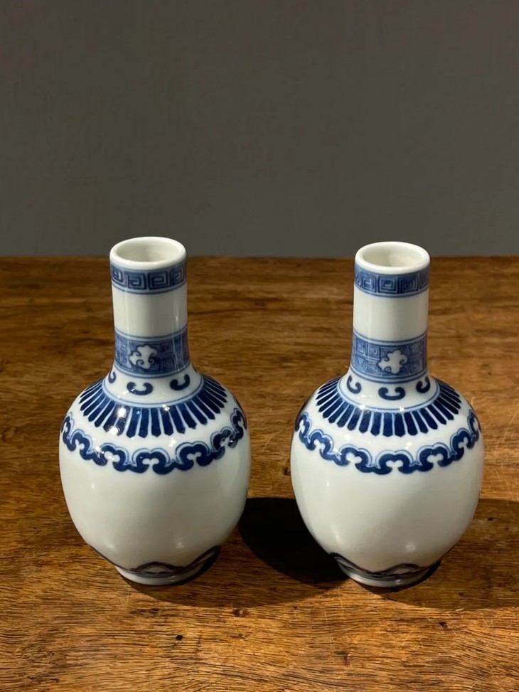 青花如意纹袖珍长颈瓶一对