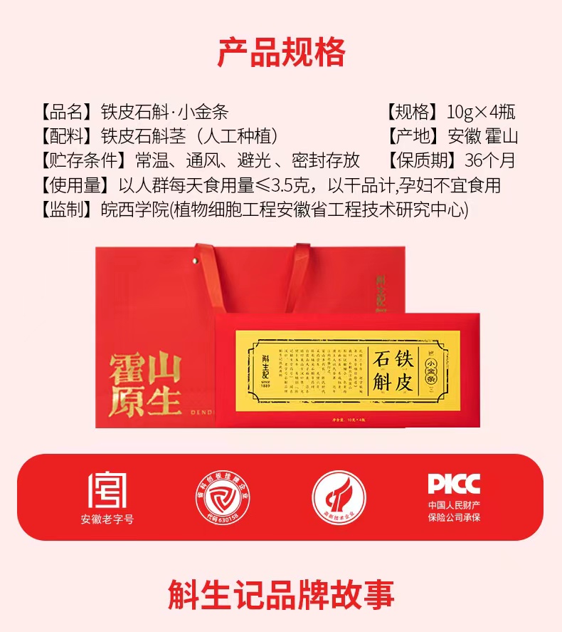 斛生记霍山铁皮石斛寸金礼盒送礼中国红40g