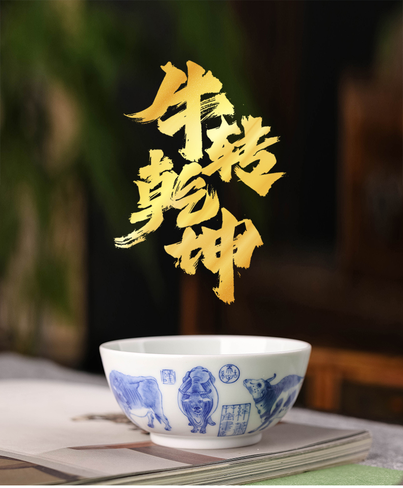 青花内画牛转乾坤杯