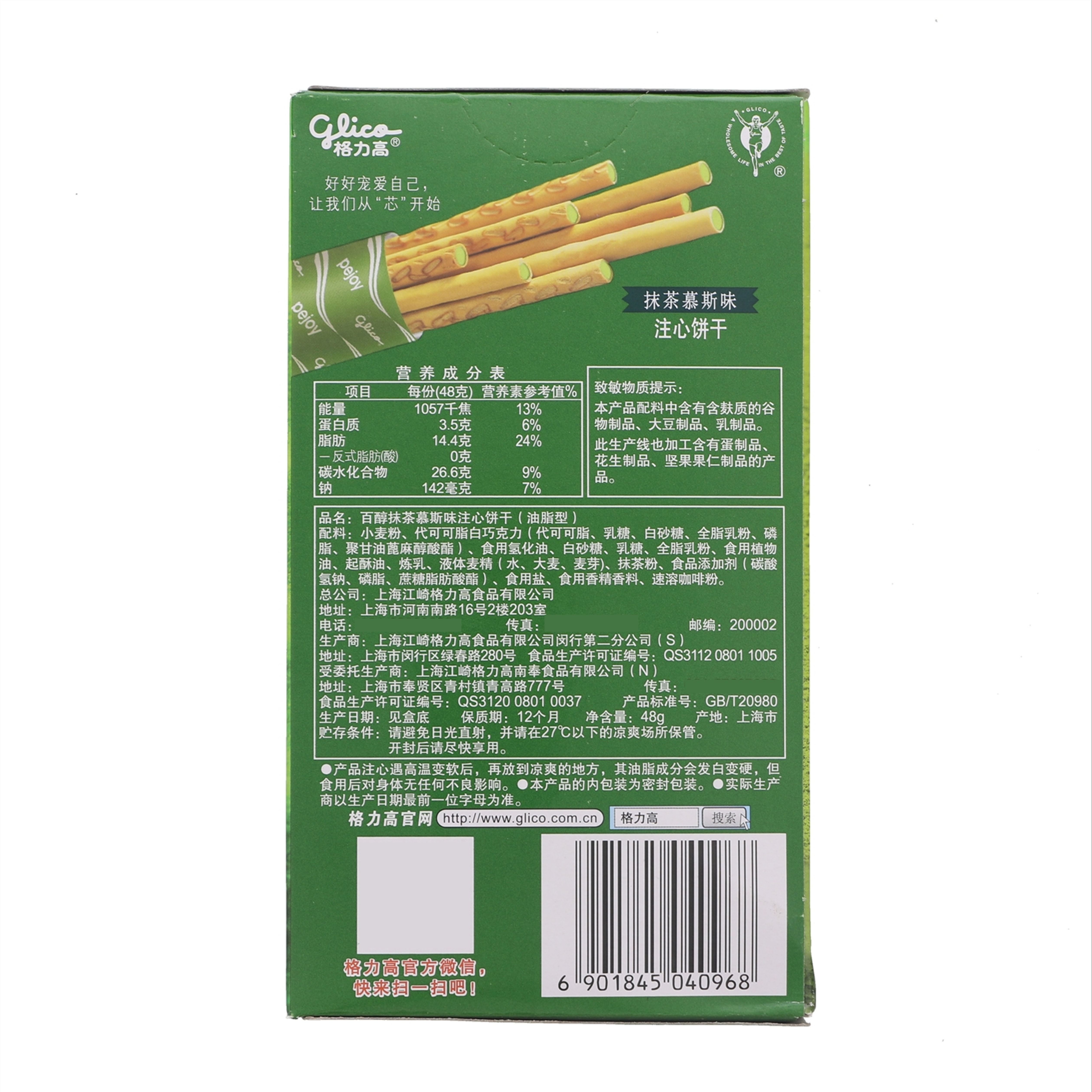 格力高 百醇抹茶慕斯味注心饼干 48g/盒