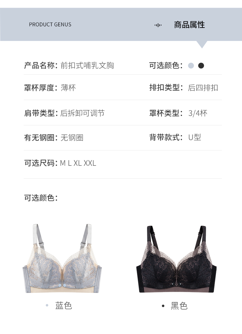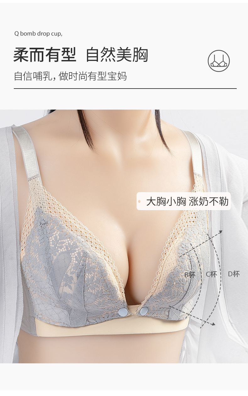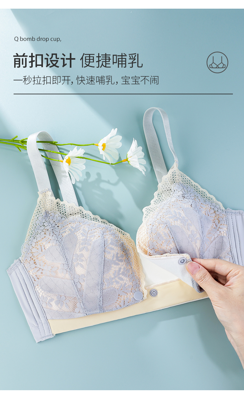 雅黛丽哺乳内衣上托聚拢防下垂前开扣薄款孕妇怀孕大码睡眠文胸女