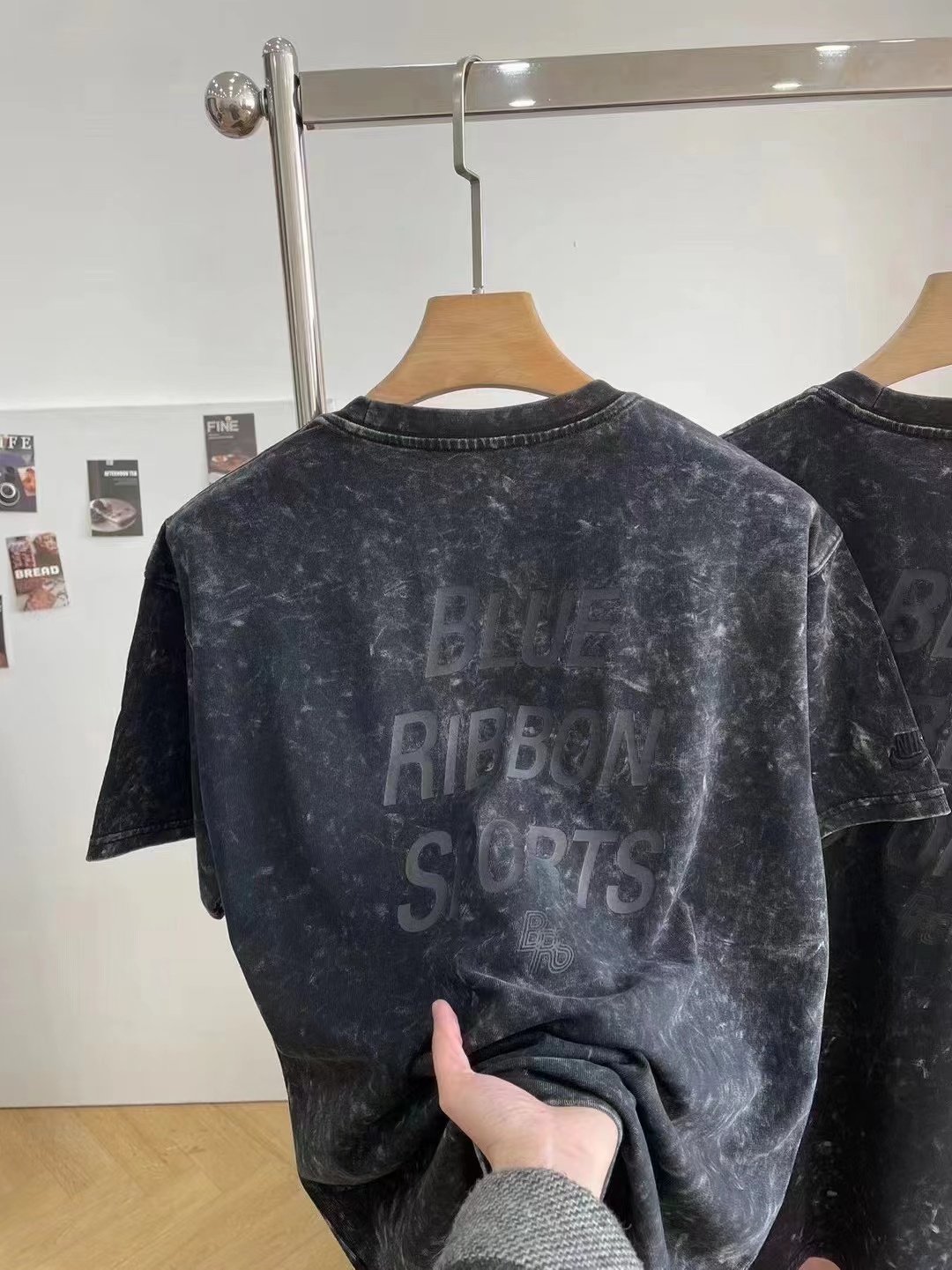 F0306109夏季新款圆领百搭复古做旧水洗印花短袖T恤