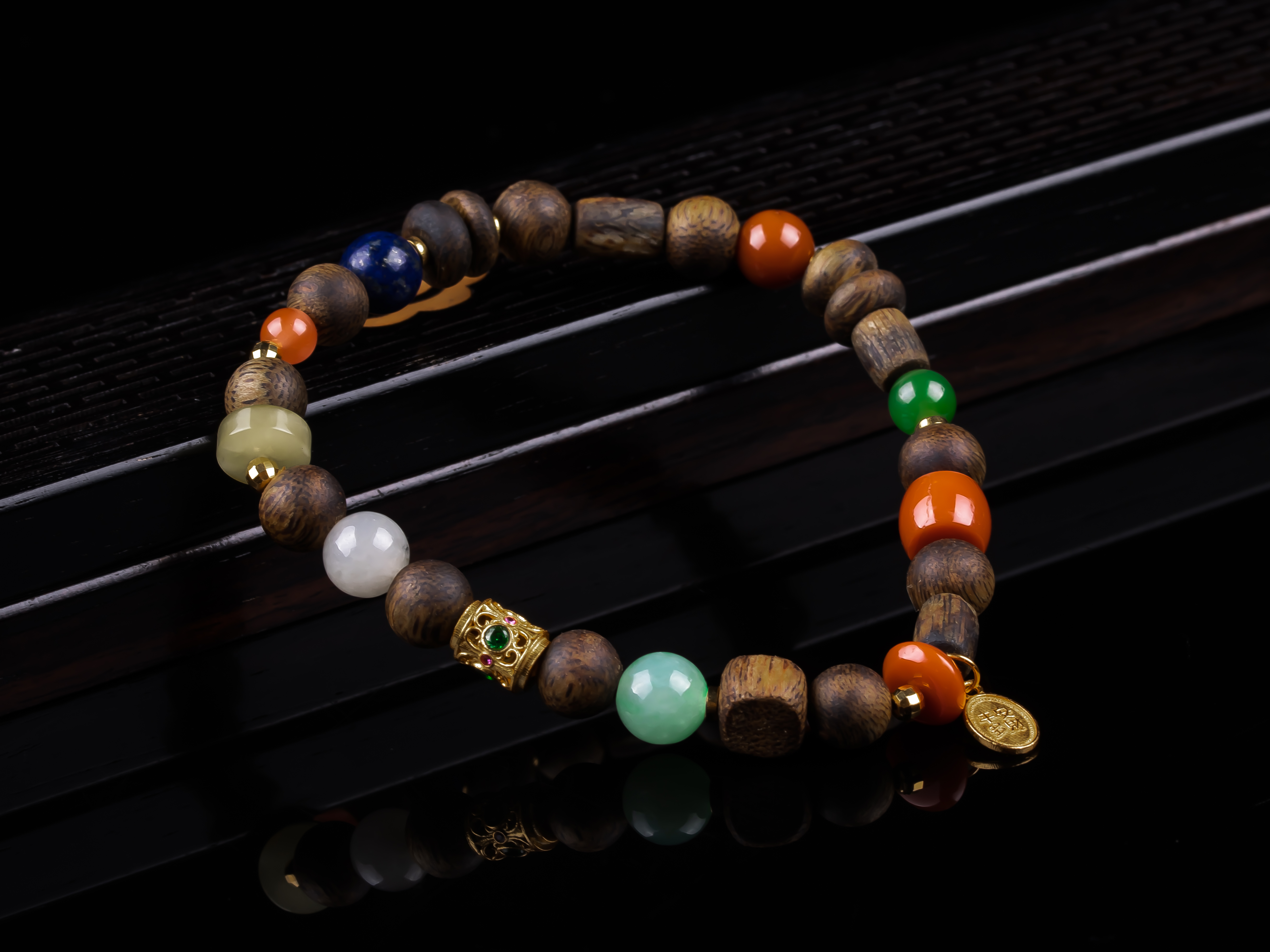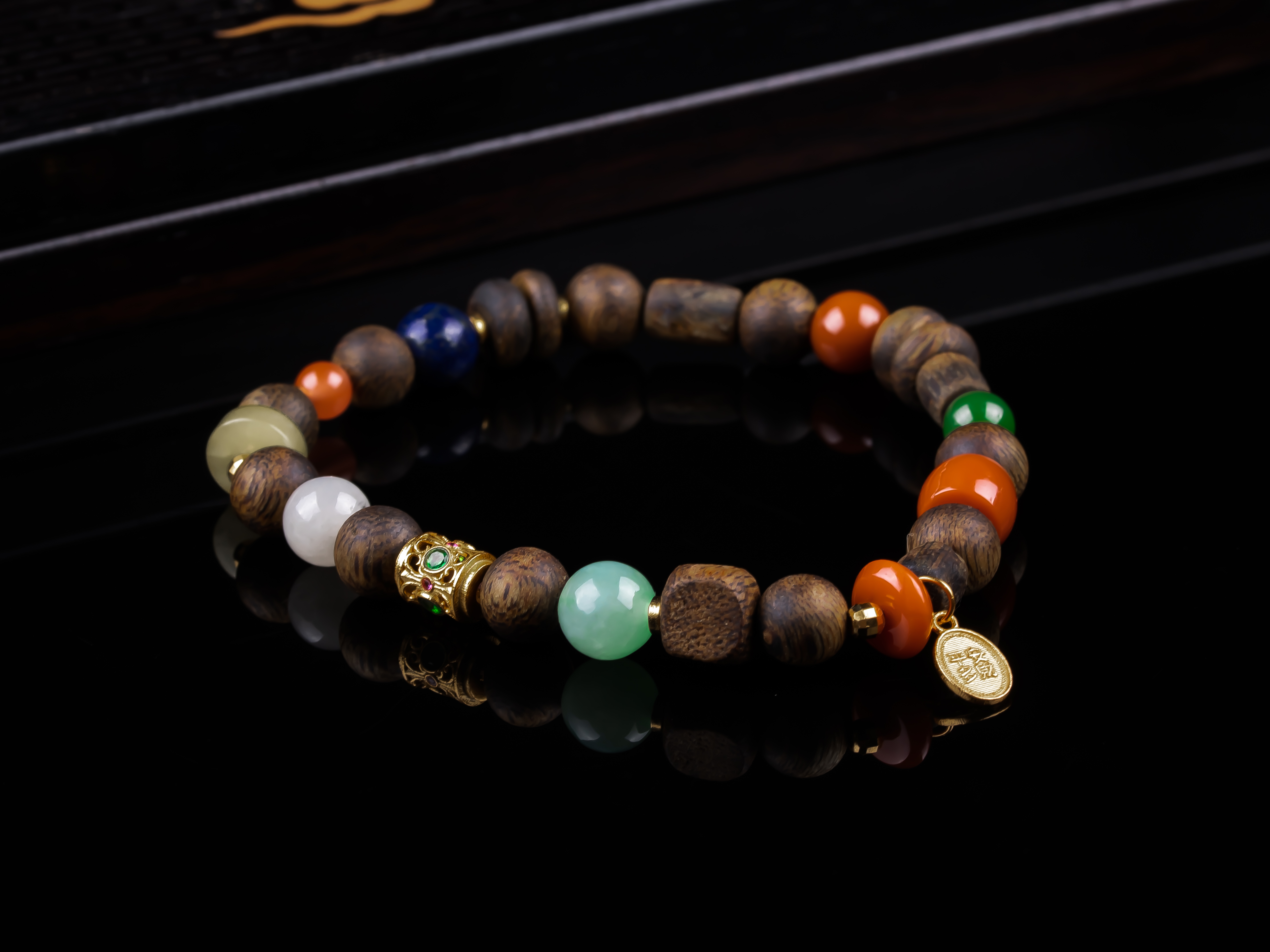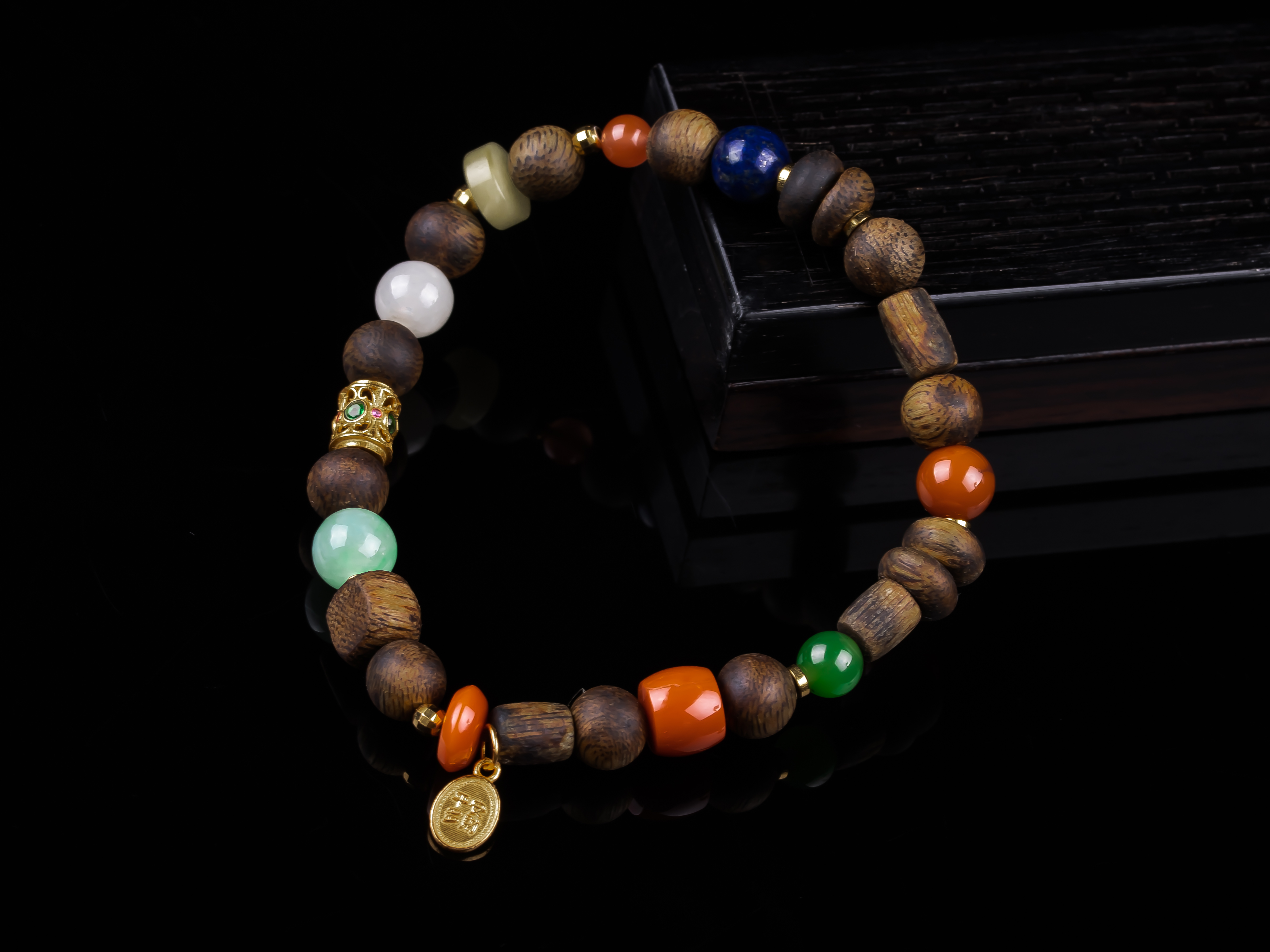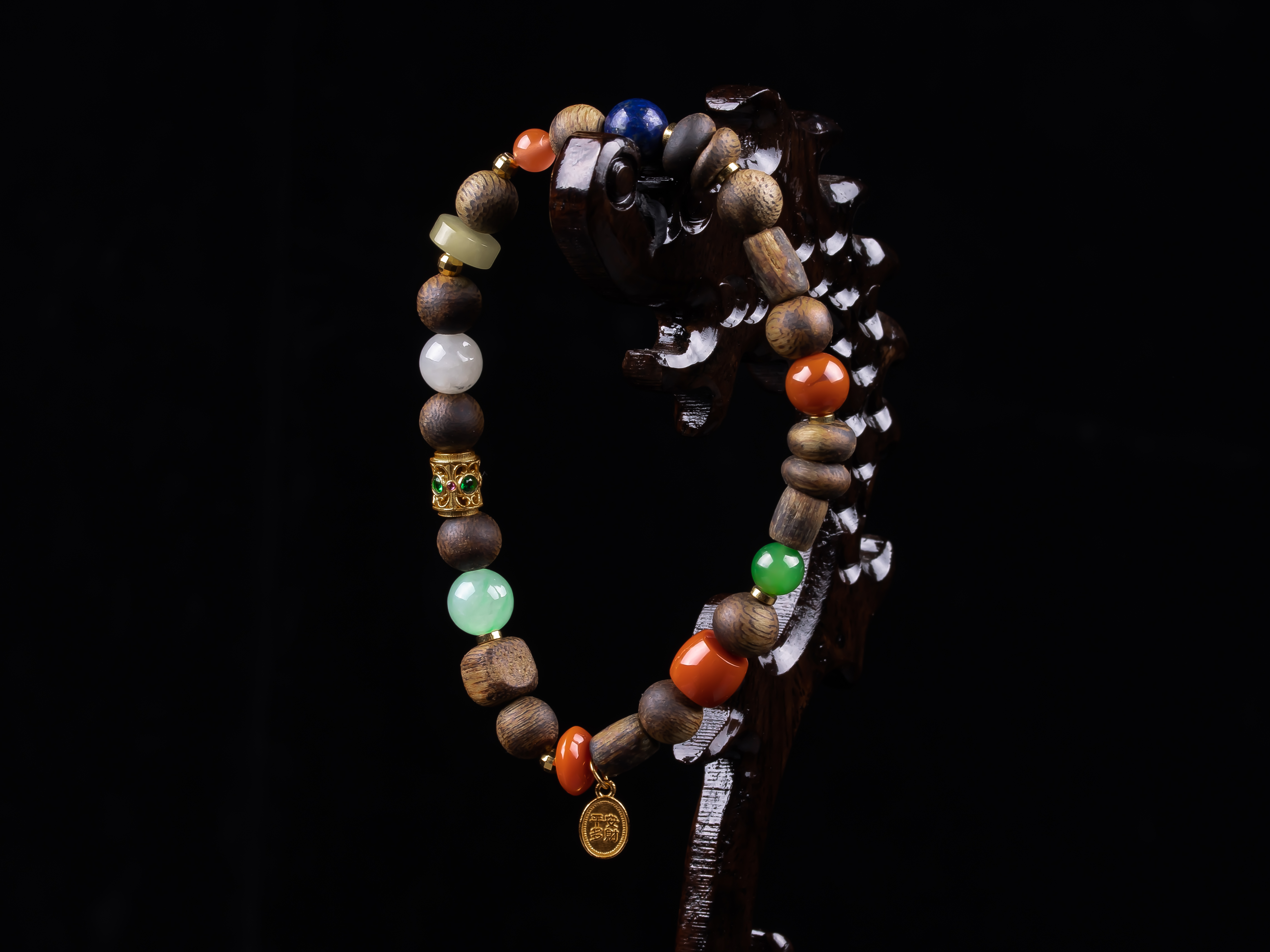 XY0336沉香+翡翠南红多宝随型手串,天然沉香约7.3mm,原色原味,香味自然清甜,圆珠与随形珠混搭,翡翠南红蜜蜡青金石银配饰混搭,这是一款打破常规、随性、随心自由的多宝手串,最适合追求个性风格的你。