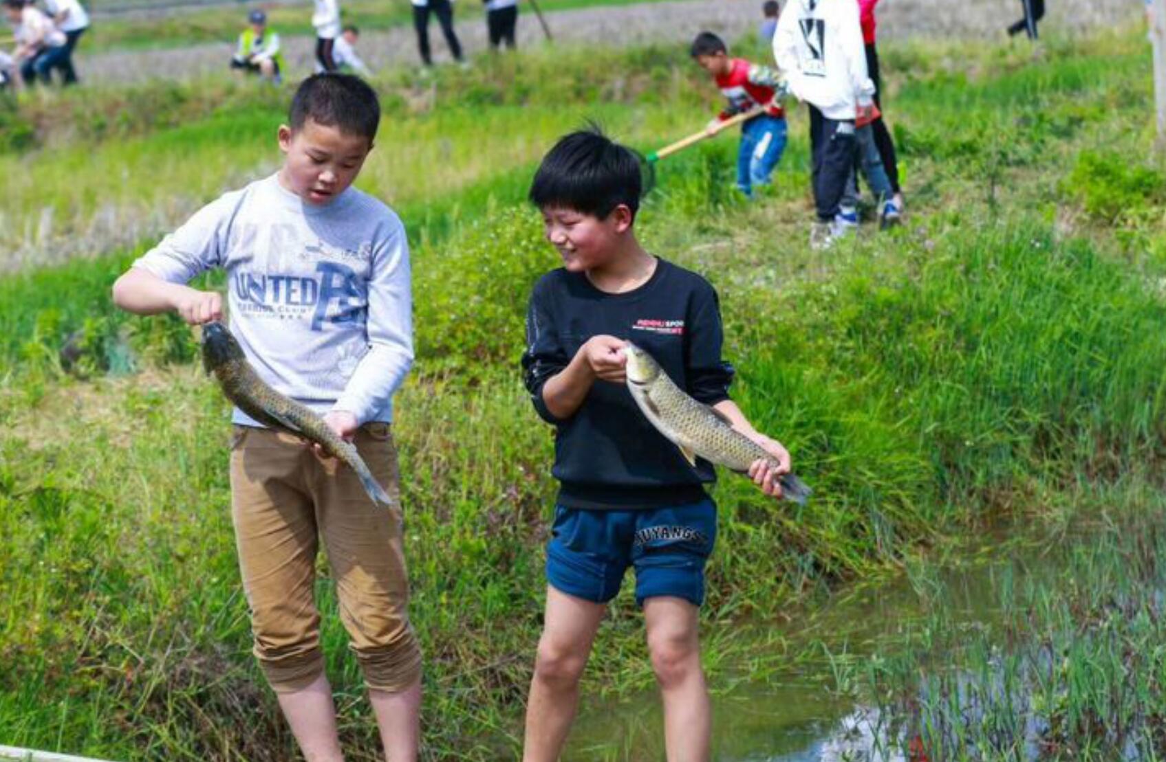 和小伙伴一起到田间抓鱼,挖泥鳅