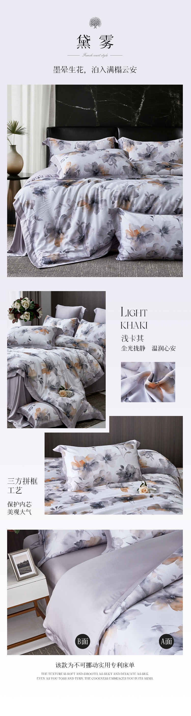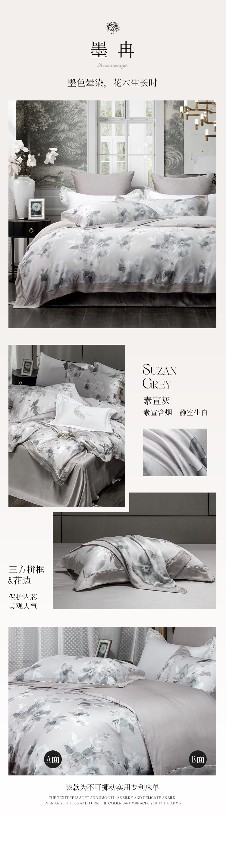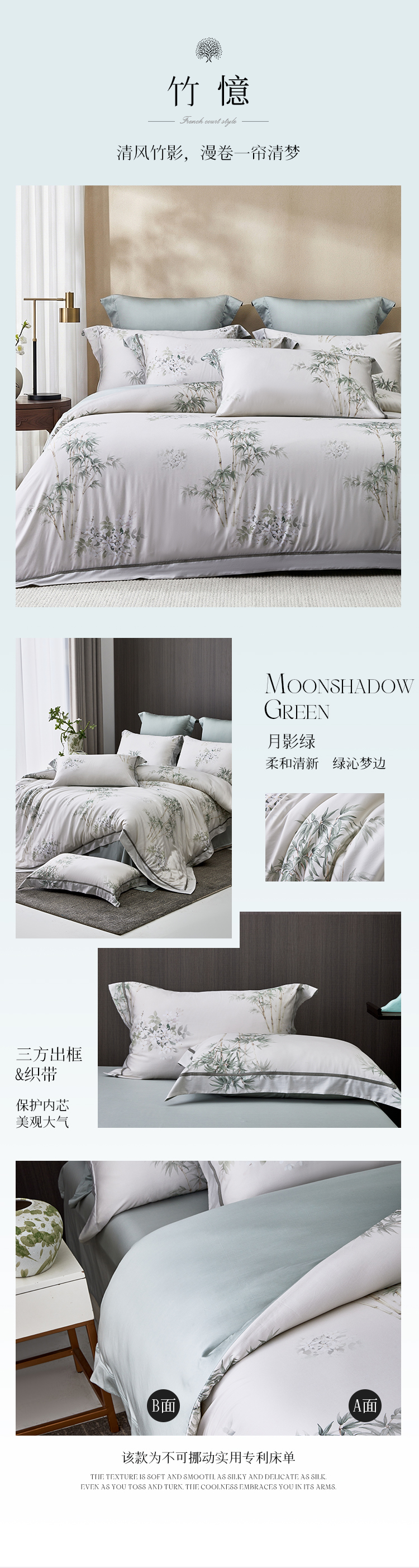 多喜爱 60S兰精天丝四件套 萃嘢/黛雾/墨苒/竹憶/花慕里 【奥地利进口兰精天丝】【礼盒包装】【三方拼框】【专利床单】如丝柔滑 如水沁凉