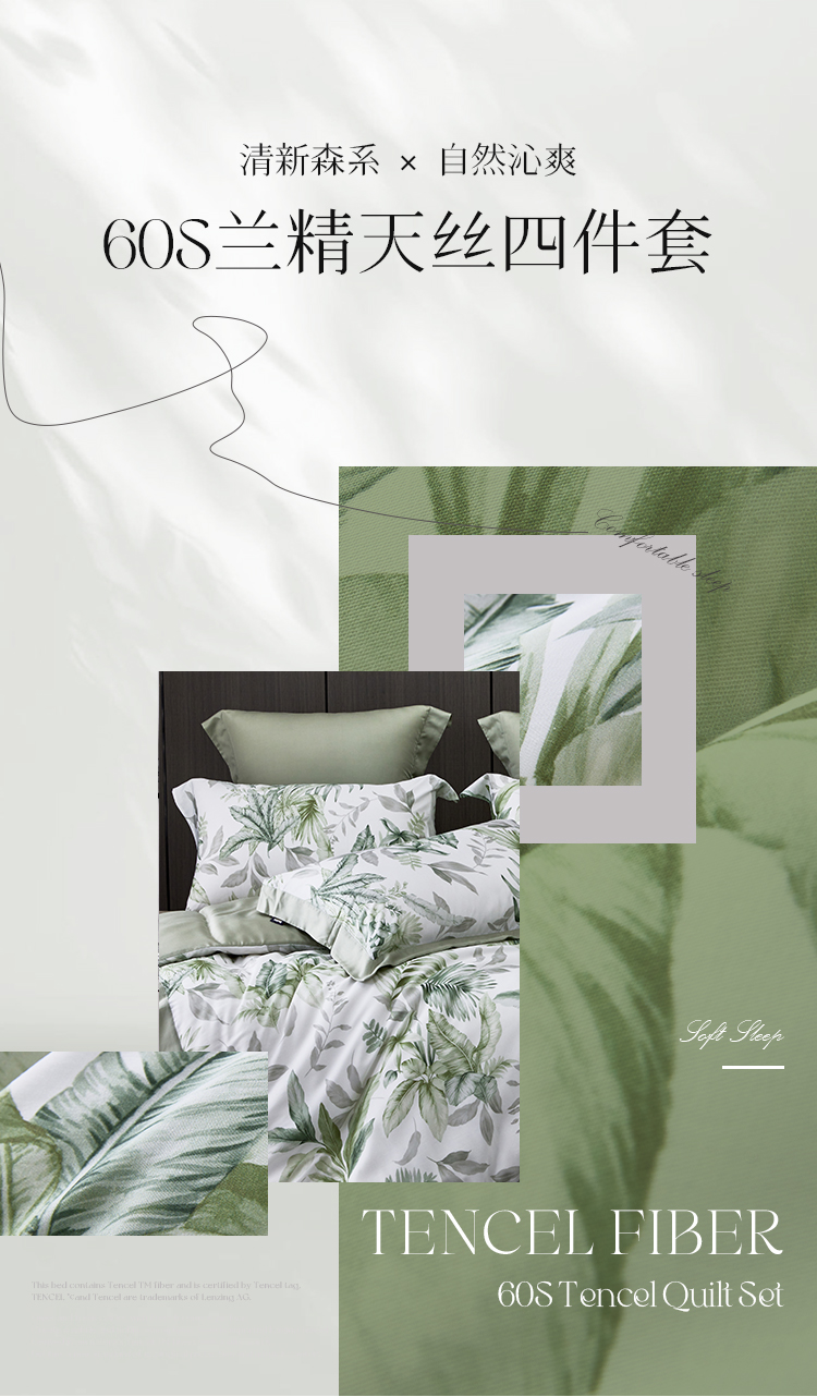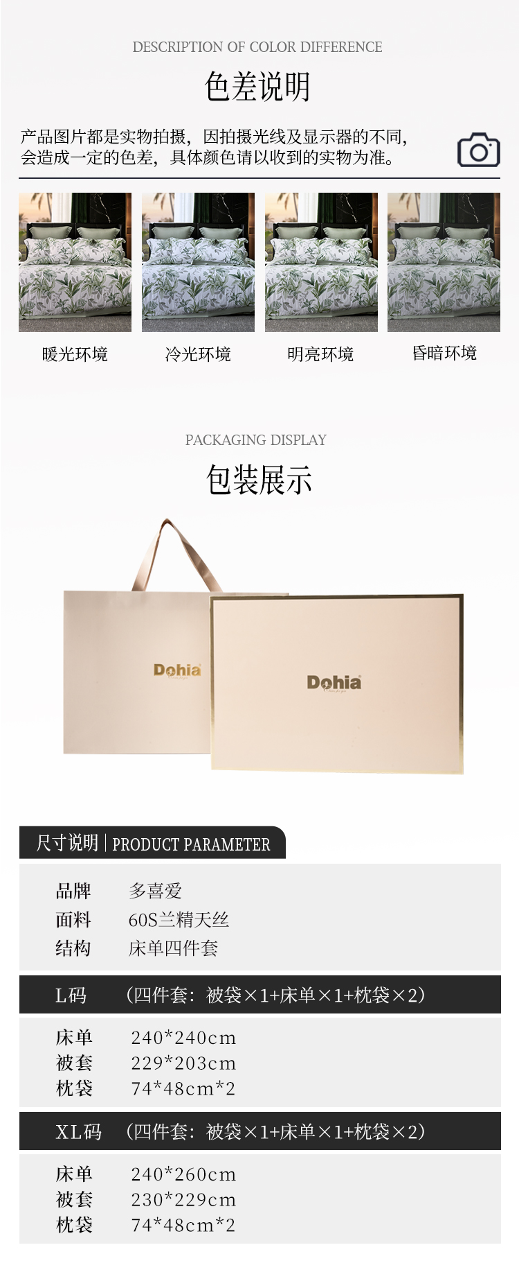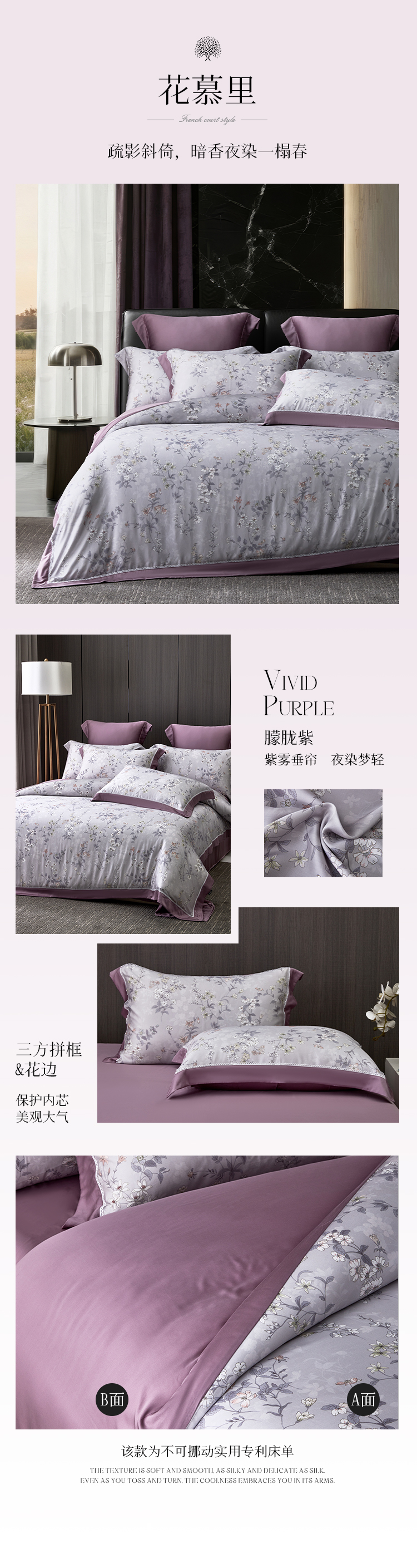 多喜爱 60S兰精天丝四件套 萃嘢/黛雾/墨苒/竹憶/花慕里 【奥地利进口兰精天丝】【礼盒包装】【三方拼框】【专利床单】如丝柔滑 如水沁凉