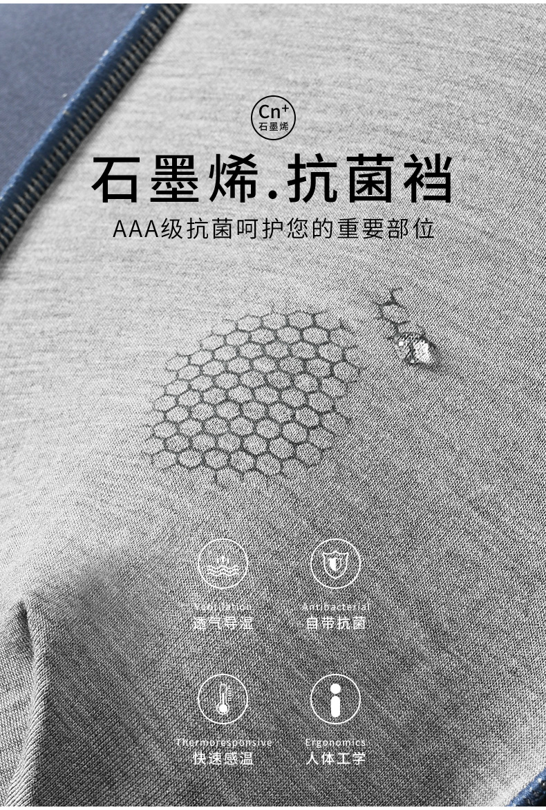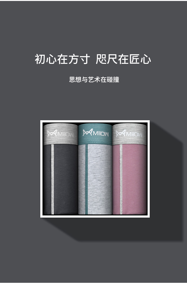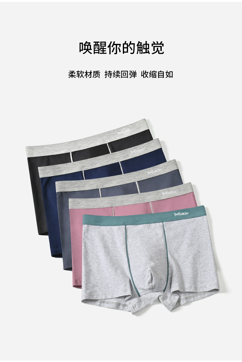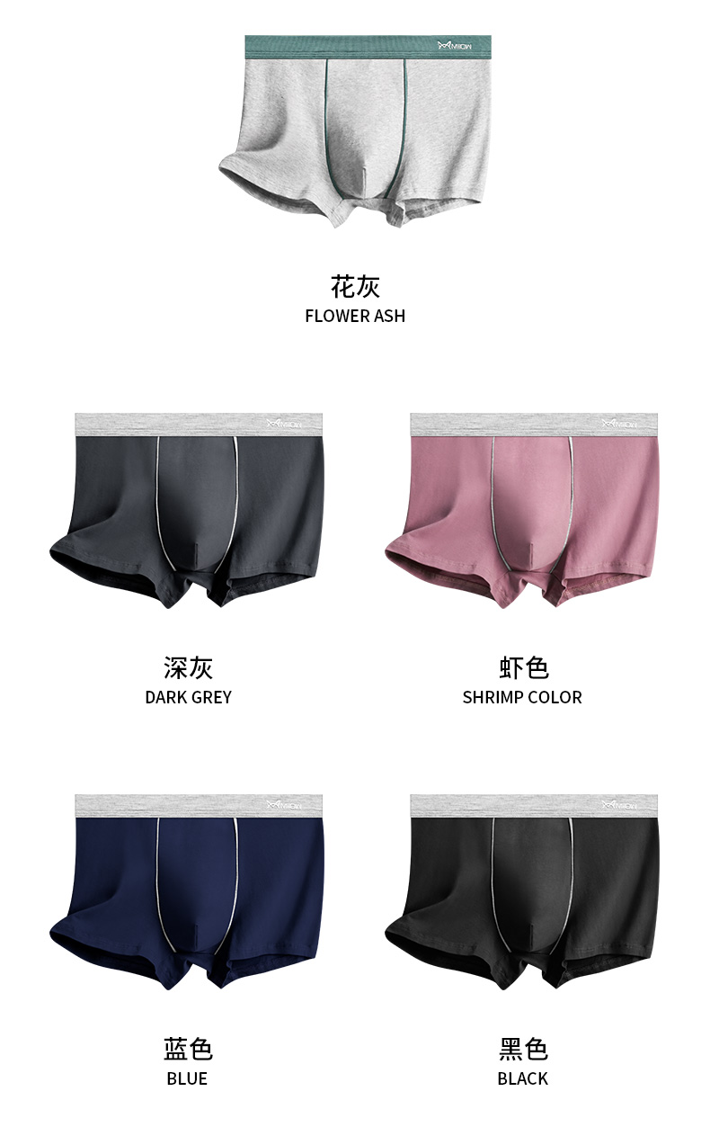【猫人男士纯棉内裤】纯色棉质舒适无痕透气,80支石墨烯干爽平角内裤