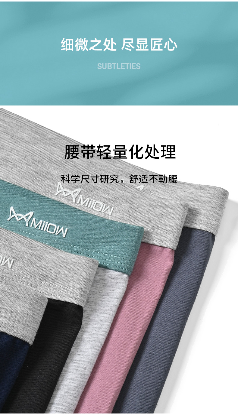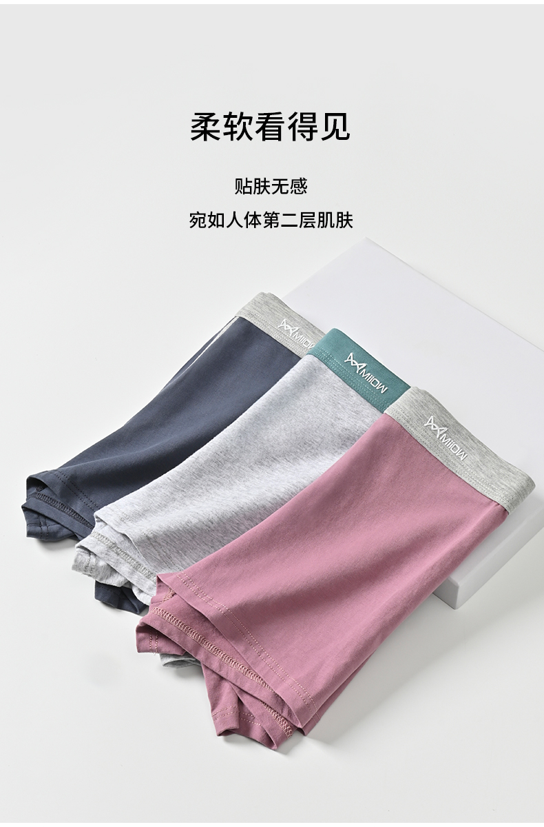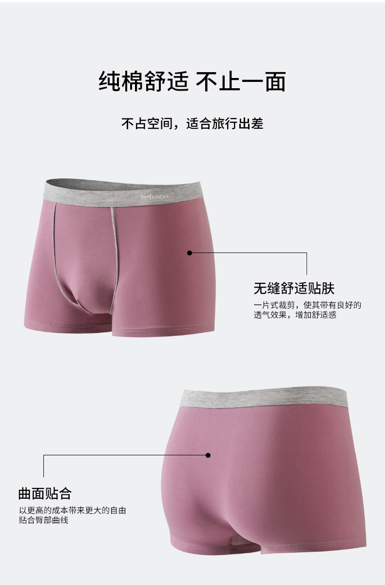 【猫人男士纯棉内裤】纯色棉质舒适无痕透气,80支石墨烯干爽平角内裤