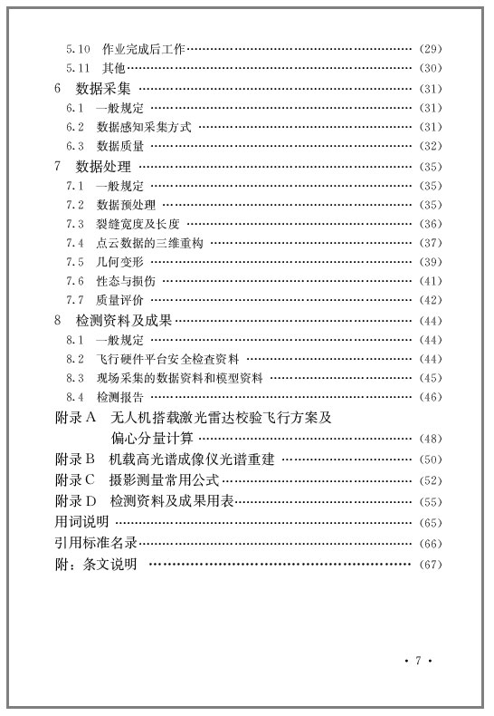 根据中国工程建设标准化协会《关于印发〈2019年第一批协会标准制订、修订计划〉的通知》(建标协字〔2019〕12号)的要求,标准编制组在深入调查研究,认真总结实践经验,参考有关国际标准和国内标准,并广泛征求意见的基础上,制定本标准。 本标准共分8章和4个附录,主要技术内容包括:总则,术语、符号和缩略语,基本规定,无人机与搭载设备,飞行计划,数据采集,数据处理,检测资料及成果等。 本标准由中国工程建设标准化协会检测与试验专业委员会归口管理,由中冶建筑研究总院有限公司负责具体技术内容的解释。