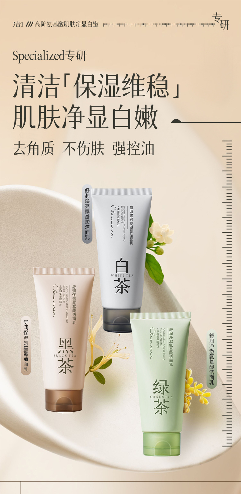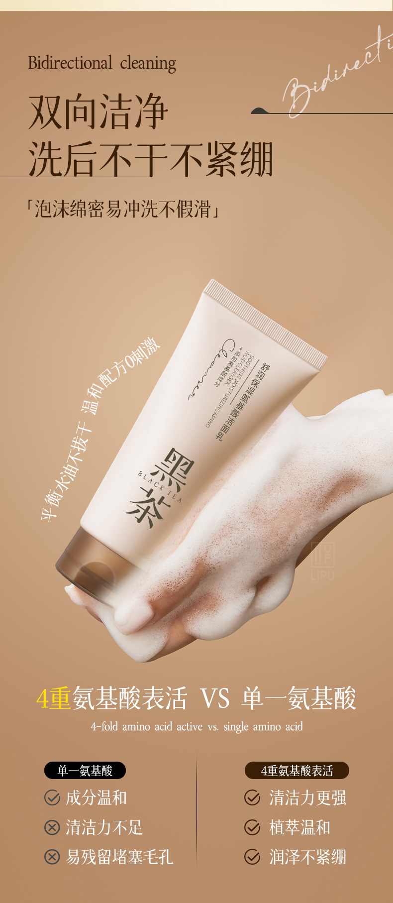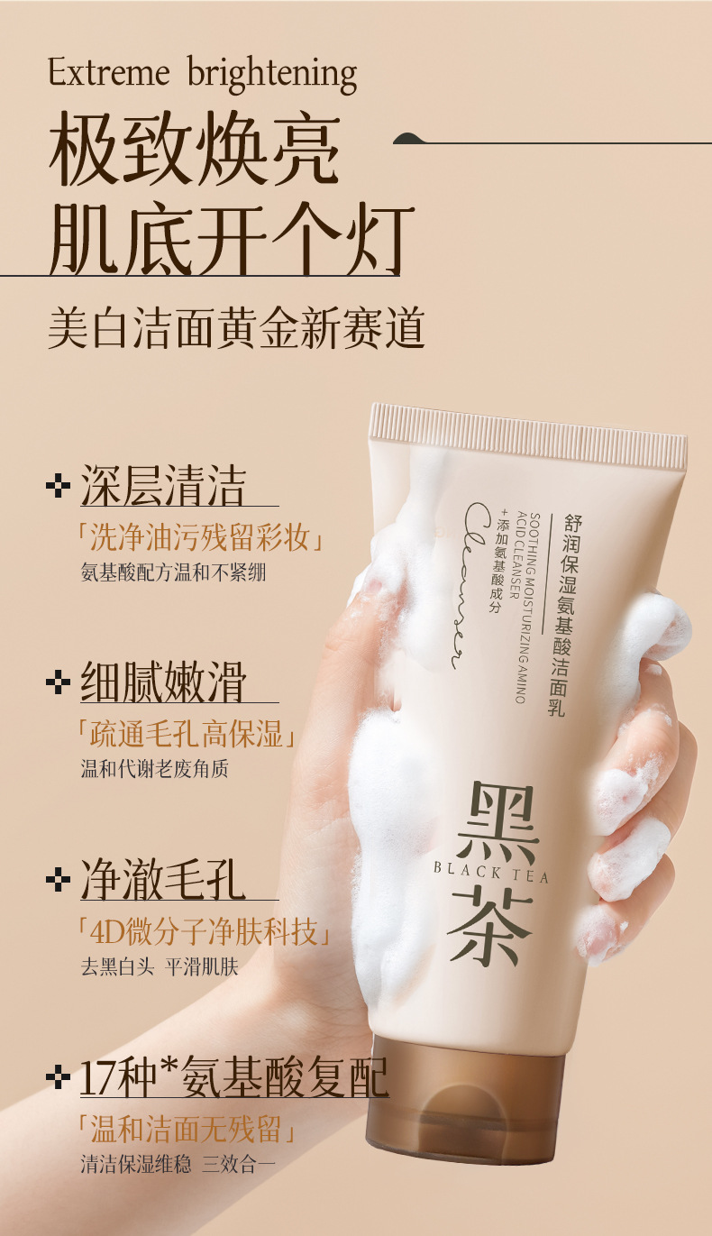 【控油亮肤!溶解黑头】黑茶氨基酸洗面奶女山茶花女神深层清洁男士洁面乳国货.xb